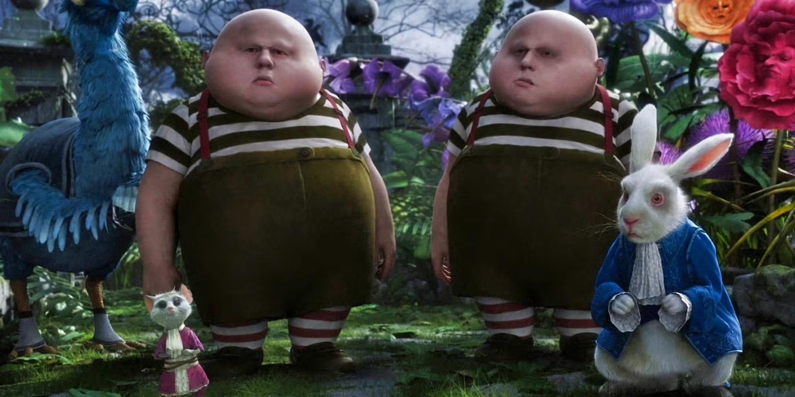 Aside from Mad Hatter, the 2010 version of Alice in Wonderland boasts several other creepy characters. Tweedledee and Tweedledum possess none of the cuteness of the 1951 animated versions - looking more like twisted, undead versions of Humpty Dumpty. And the Queen of Hearts awkwardly parades around Wonderland with a giant head atop her tiny body. But we’re not really surprised at any of this - it’s a Tim Burton film, after all.