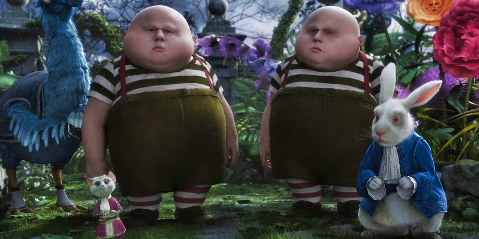 Aside from Mad Hatter, the 2010 version of Alice in Wonderland boasts several other creepy characters. Tweedledee and Tweedledum possess none of the cuteness of the 1951 animated versions - looking more like twisted, undead versions of Humpty Dumpty. And the Queen of Hearts awkwardly parades around Wonderland with a giant head atop her tiny body. But we’re not really surprised at any of this - it’s a Tim Burton film, after all.