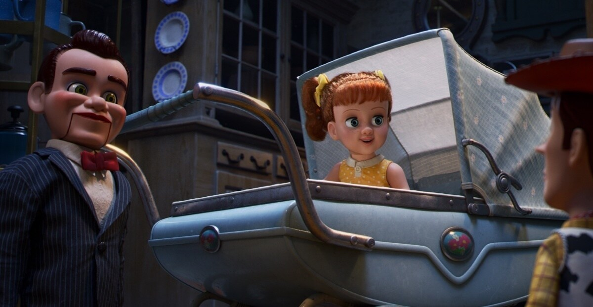Runners up - Gabby Gabby and the Bensons. This old-school doll and her goons are on Woody’s tail in Toy Story 4, looking to improve their lot in life inside the Second Chance antique store. The Bensons’ ventriloquist dummy bodies are soft and floppy, with their arms dangling and their legs bent backwards. Their expressionless faces, wide open eyes, and hinged jaws make the Bensons nightmare material!