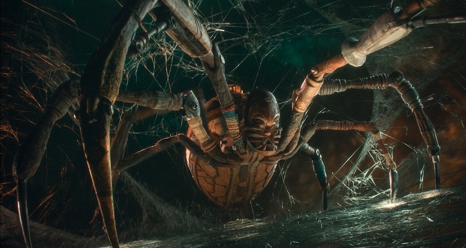 Back on the TARDIS, alarms are blaring there too, trying to alert Belinda of the Doctor’s danger. The TARDIS shows her the barber shop and she leaves to head through the streets of Lagos to find it. Meanwhile, the Doctor discovers that Omo sold him out to the Barber, which he takes deeply personally – recalling back to what he was explaining to Belinda earlier. Trying to leave, the Doctor opens the door – which instead of being in Lagos reveals them to be somewhere in outer space, on the back of a giant, mechanical spider, no less! They all nearly get sucked out into the vacuum of space, before the Doctor is able to close the door again.