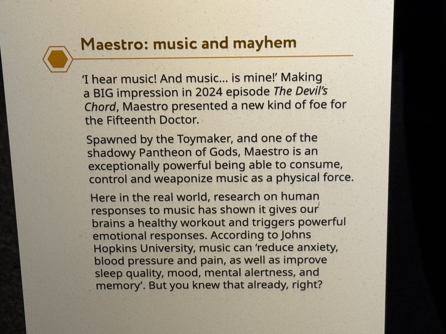 A handy timeline of all the actors who played the Doctor is on display, although if you’re attending this exhibit, you probably already know!