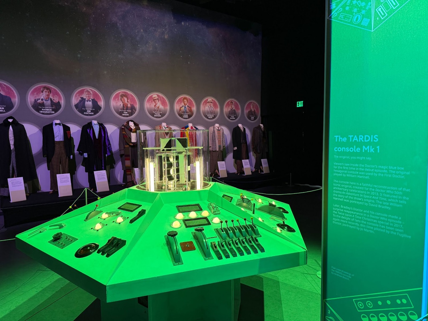A faithful recreation of the original TARDIS console created for the 2013 docudrama An Adventure in Space and Time, which chronicled the creation of the show in the 1960s, is proudly displayed. The console was later used in the 2017 episode “Twice Upon a Time" and later for Jo Martin’s Fugitive Doctor.