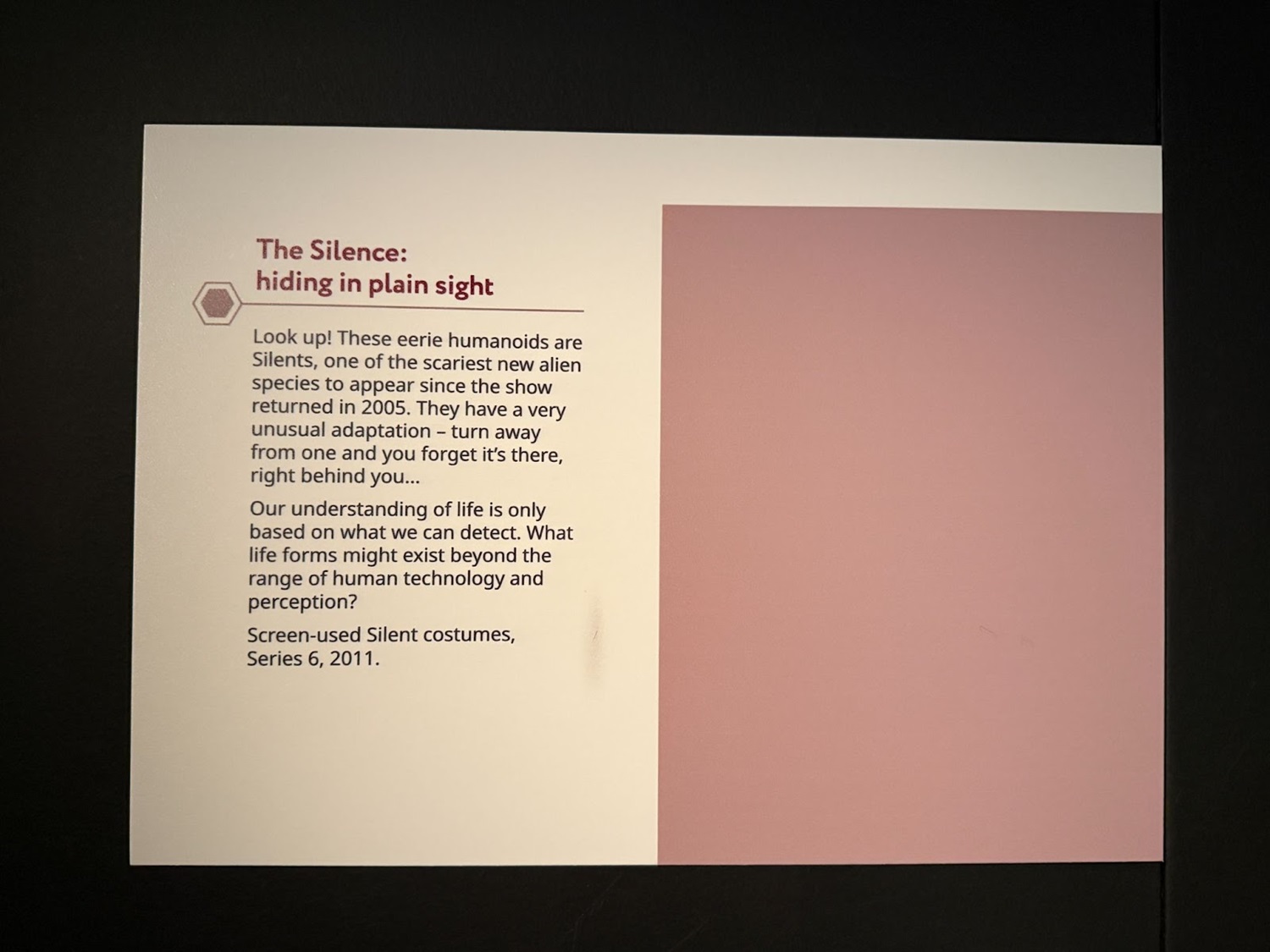 These eerie humanoids are Silents, one of the scariest new alien species to appear since the show returned in 2005. They have a very unusual adaptation – turn away from one and you forget it's there, right behind you...