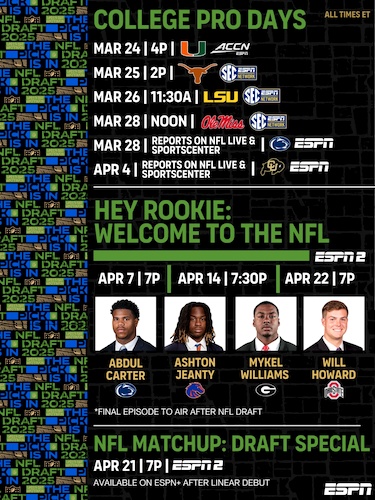 - ESPN is gearing up for the 2025 NFL Draft with programming announcements across all platforms.