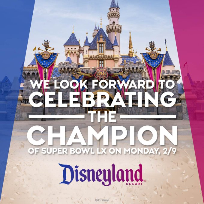 - With this year’s Super Bowl taking place just north of Disneyland in the San Francisco Bay Area, we already knew that whoever won would be going just south to the Happiest Place on Earth, which is also currently still in the height of their 70th anniversary celebrations.