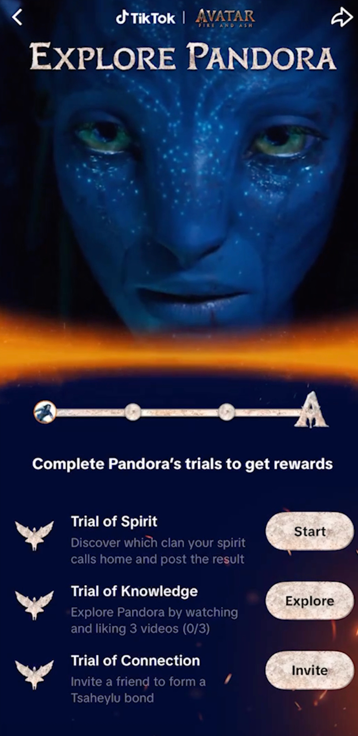 Social media platform TikTok is celebrating the upcoming theatrical release of Avatar: Fire and Ash with a brand new in-app activation.