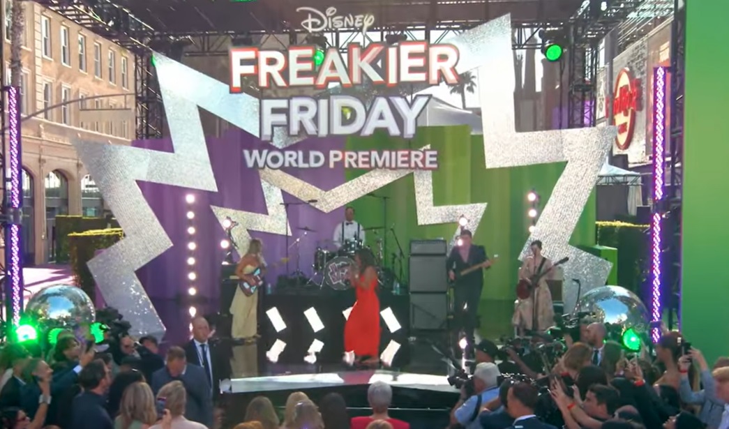 For the world premiere of Freakier Friday at El Capitan in Hollywood, the fictional band Pink Slip performed a rockin’ rendition of their hit “Take Me Away."