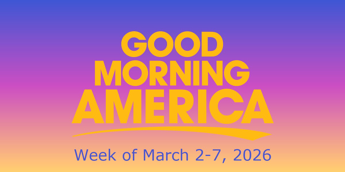 As we enter a new week of television programming, Good Morning America has announced the guests for March 2-7. The show will welcome authors, musicians, and other guests who will discuss their current and upcoming projects.