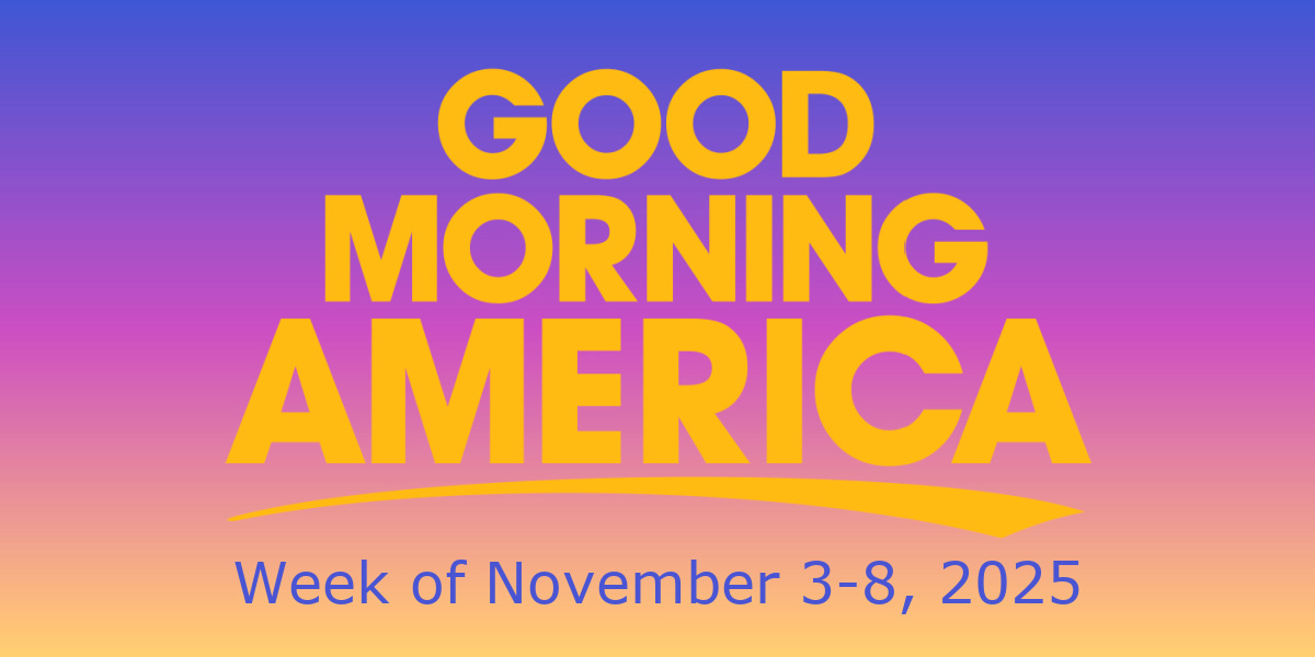 As we enter a new week of television programming, Good Morning America has announced the guests for November 3-8. The show will welcome authors, musicians, and other guests who will discuss their current and upcoming projects.
