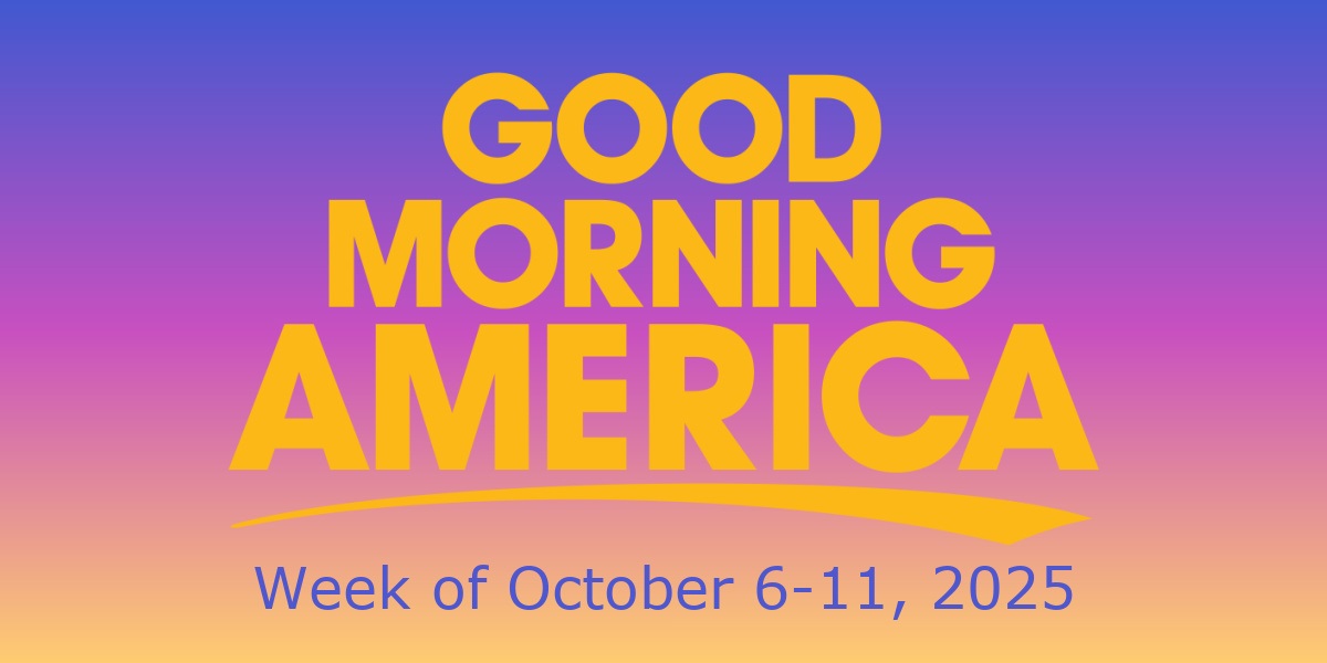 As we enter a new week of television programming, Good Morning America has announced the guests for October 6-11. The show will welcome authors, musicians, and other guests who will discuss their current and upcoming projects.