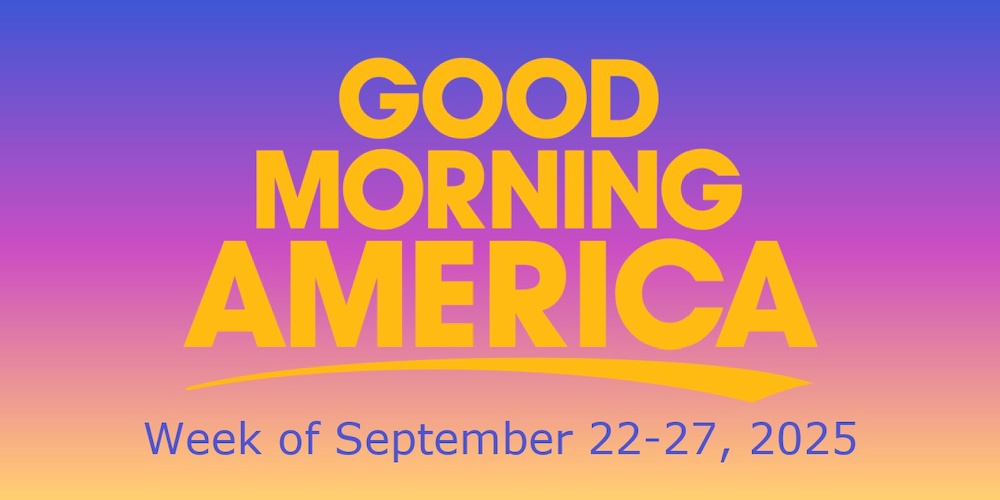 As we enter a new week of television programming, Good Morning America has announced the guests for September 22-27. The show will welcome authors, musicians, and other guests who will discuss their current and upcoming projects.