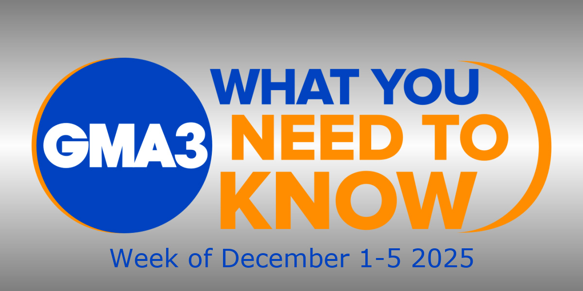 - GMA3: What You Need to Know airs Monday-Friday 1:00 pm ET | 12:00 pm CT on ABC, and 4:00 pm and 6:00 pm ET on ABC News Live.