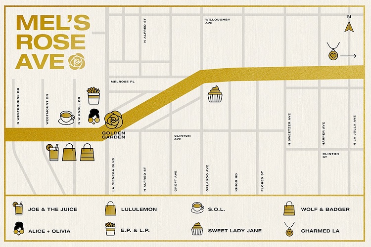 - The iconic street will transform into Mel's Rose Avenue, where your first stop will be the Golden Garden, on the corner of La Cienega Blvd & Melrose Ave, where you can grab a Mel's Rose Avenue map – the key to unlocking special offers and discounts from beloved local restaurants and retailers.