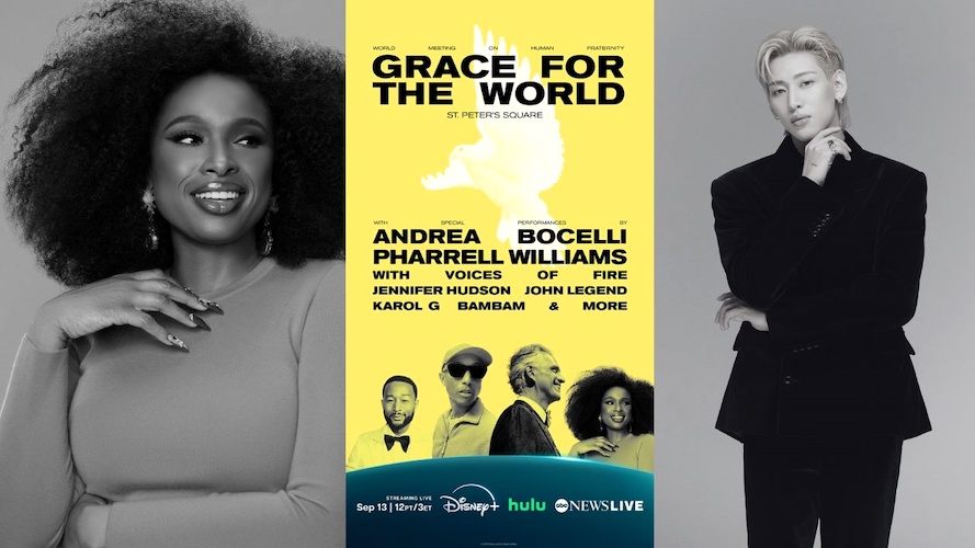 - Jennifer Hudson and BamBam join the lineup of live performances by Pharrell Williams with the Voices of Fire Gospel Choir, Maestro Andrea Bocelli, John Legend, Karol G, Clipse, Teddy Swims, Jelly Roll, The Choir of the Diocese of Rome led by Maestro Marco Frisina, and Angélique Kidjo, plus an international choir assembled for the occasion with musical direction by Adam Blackstone.