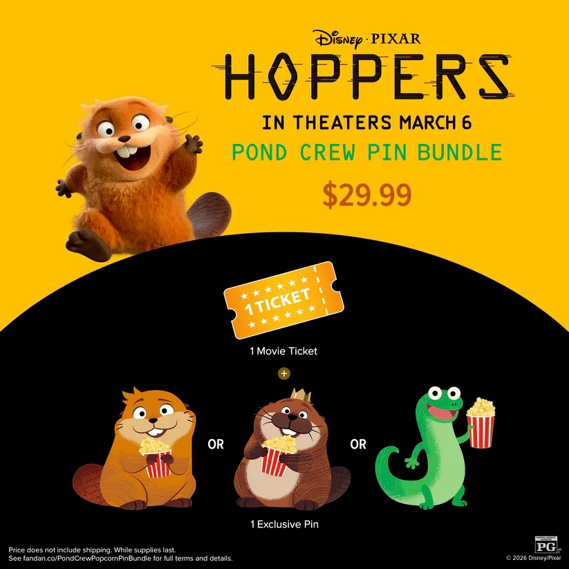Marcus Theaters will be hosting a special fan event for Hoppers on Saturday, March 7. For those who attend the event, they will receive a mystery character pin, featuring Mabel, King George, or Tom Lizard. Additionally, games and photo ops will be featured in the lobby.