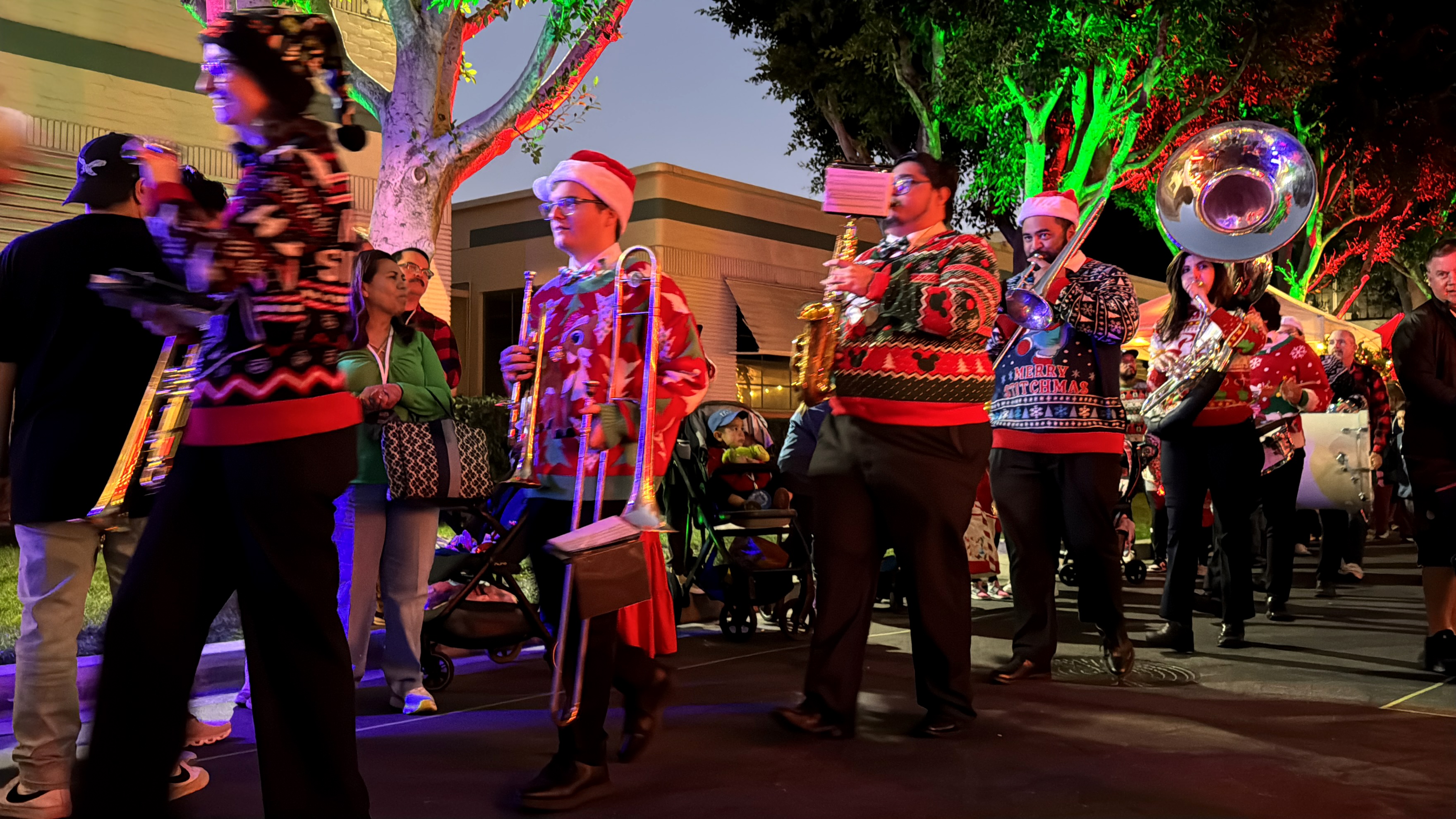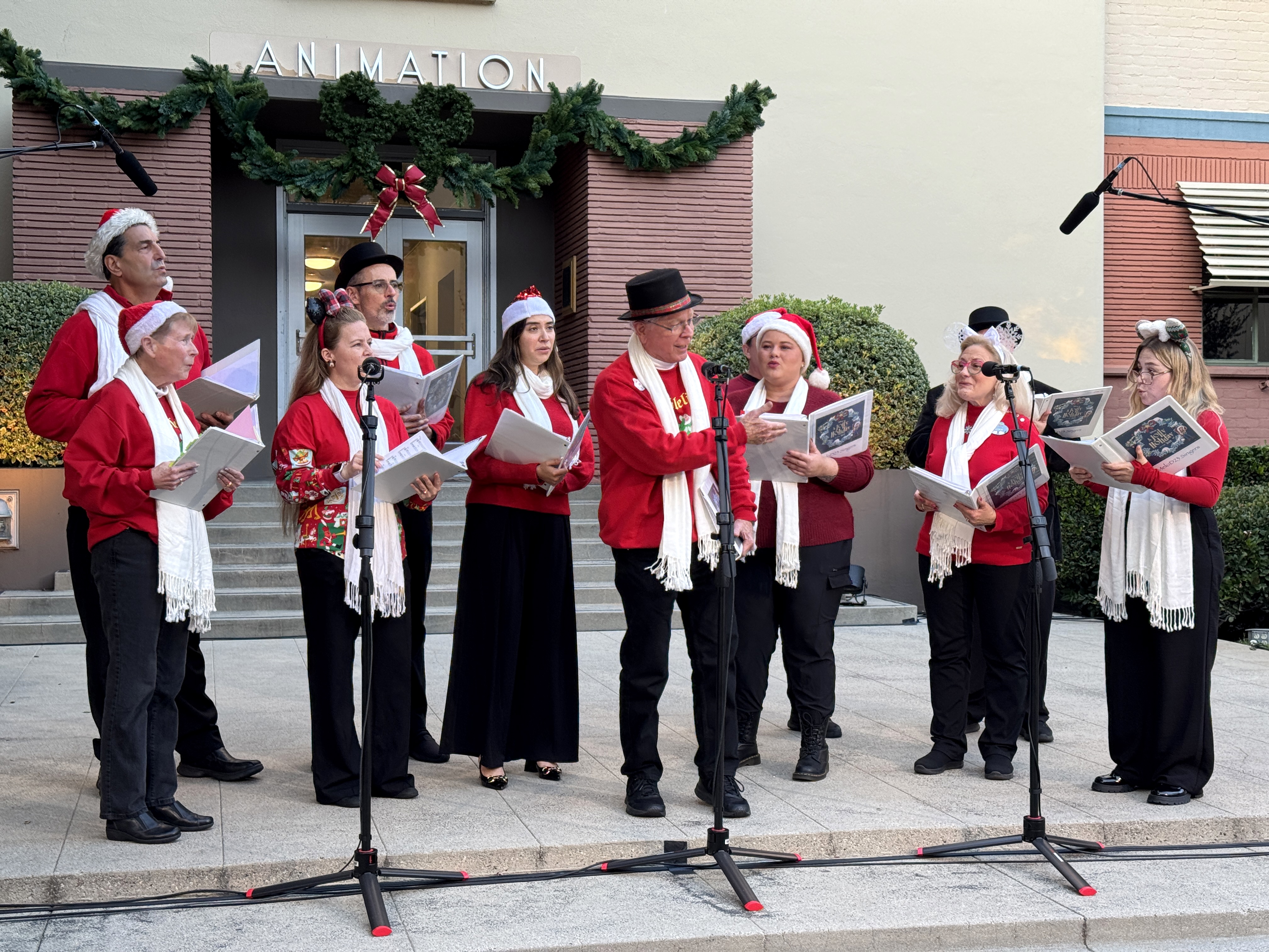 Christmas Carolers performed familiar holiday songs on the steps of the lot's old Animation building.
