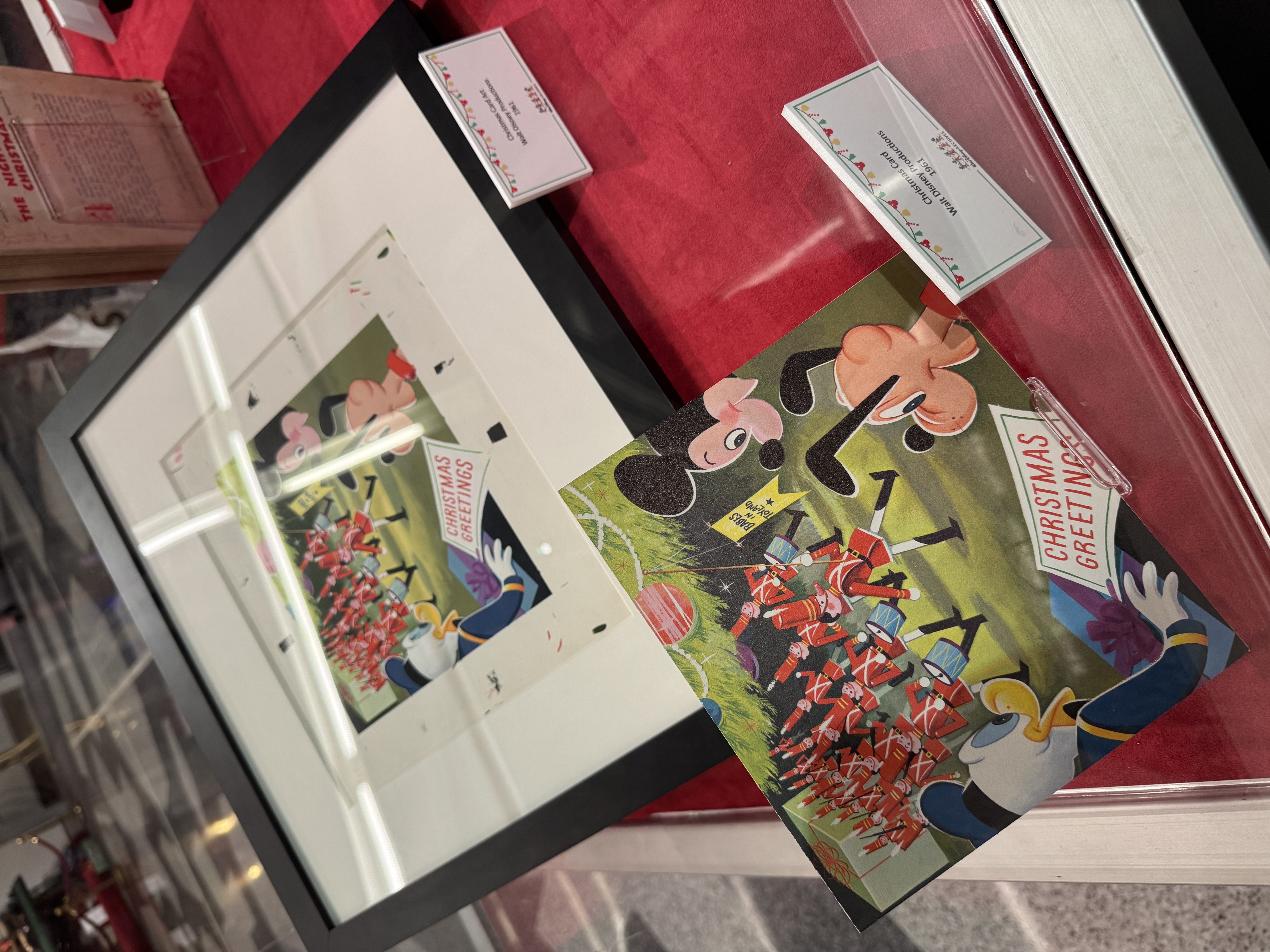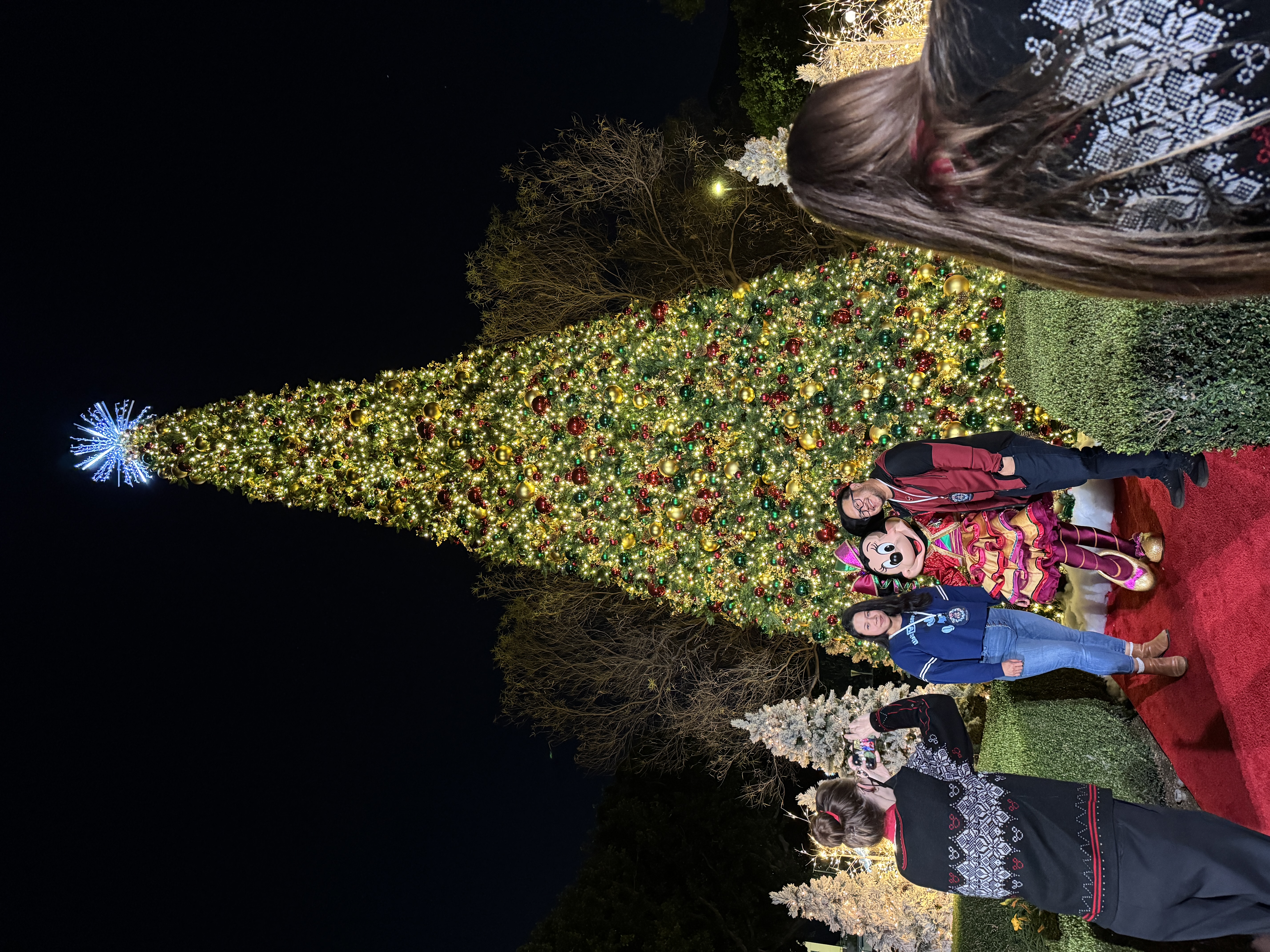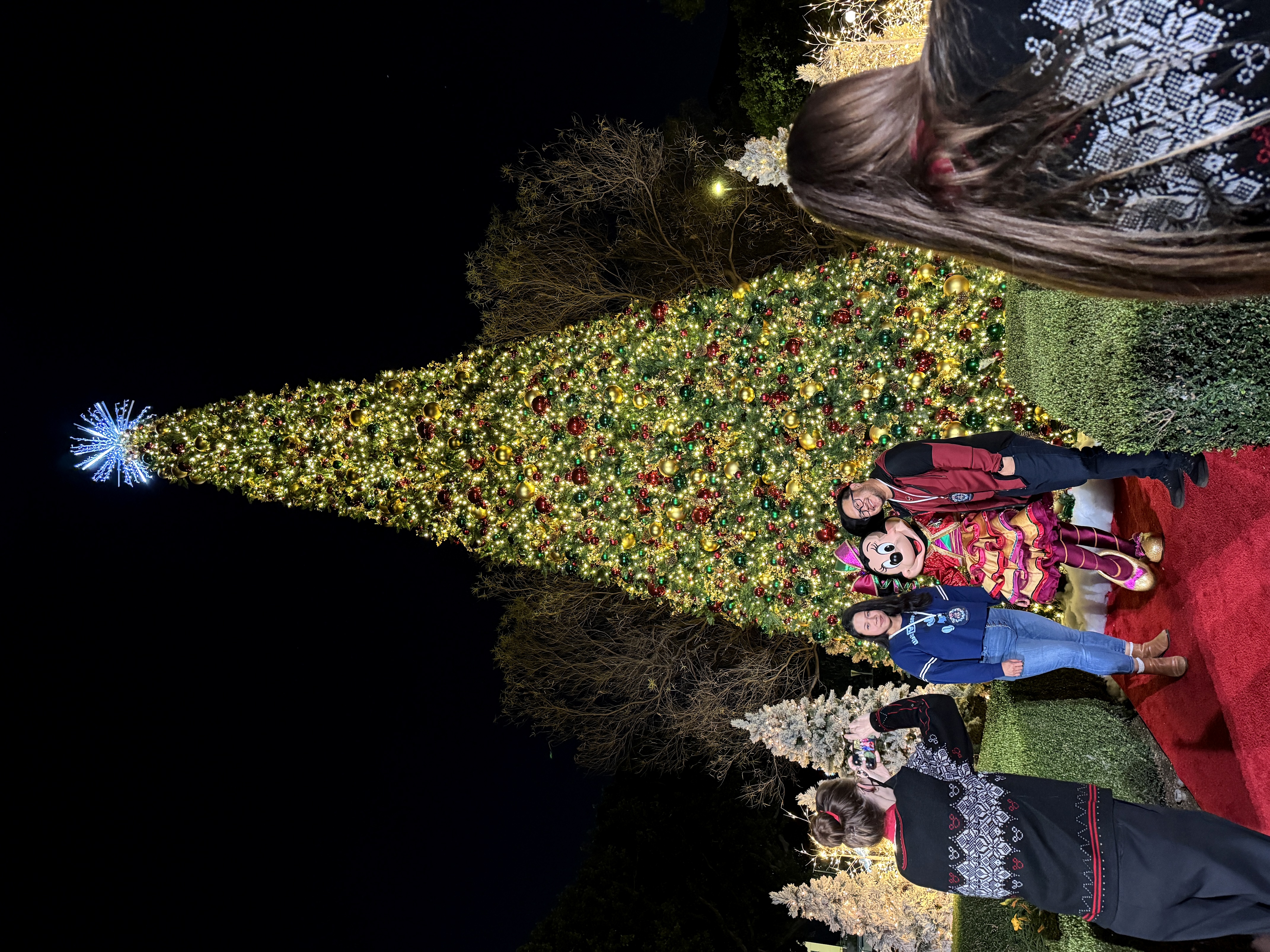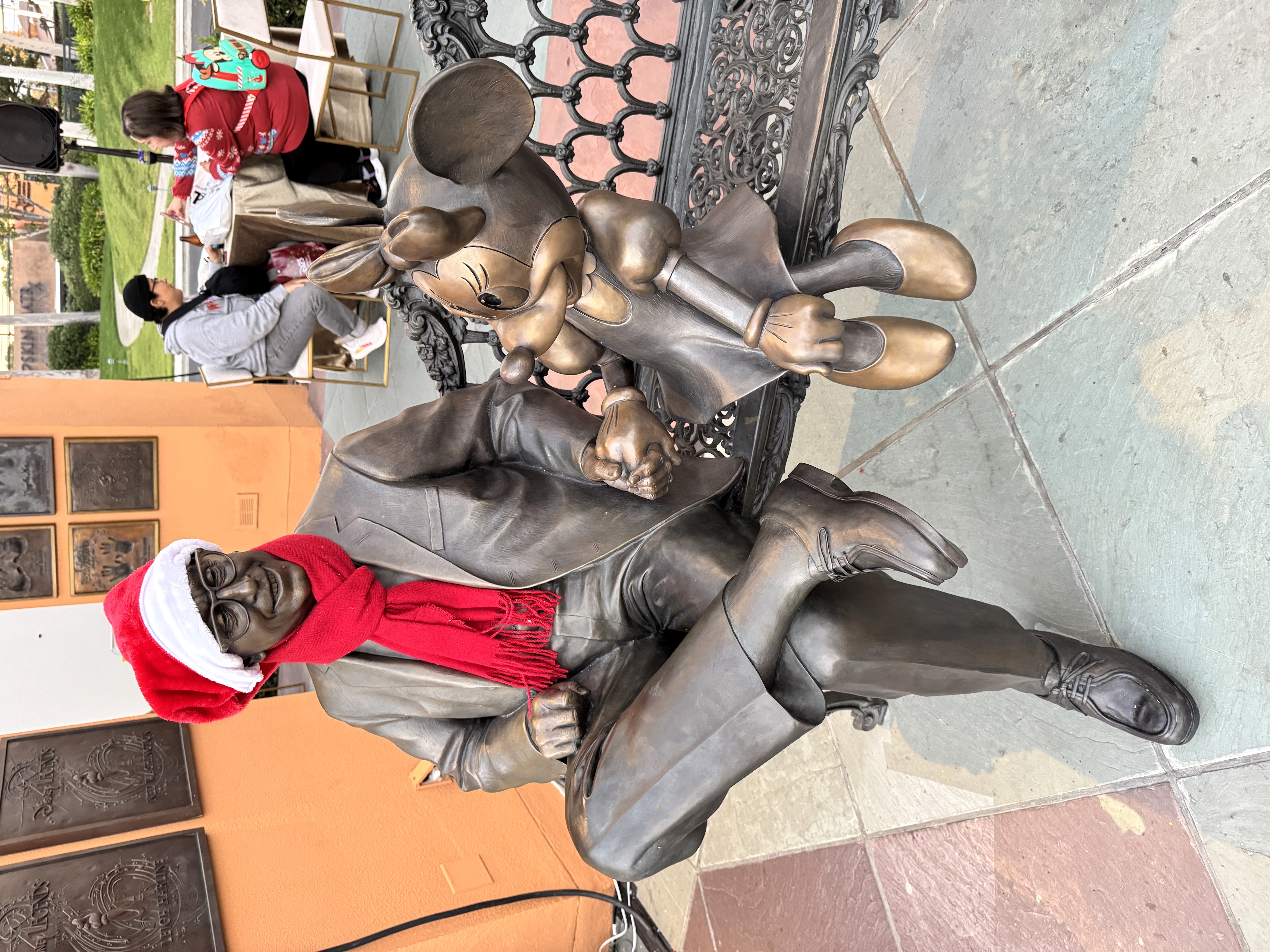 Posing underneath the lot's big Christmas tree was Mickey Mouse, all dressed up for the occasion in appropriate reds and greens.