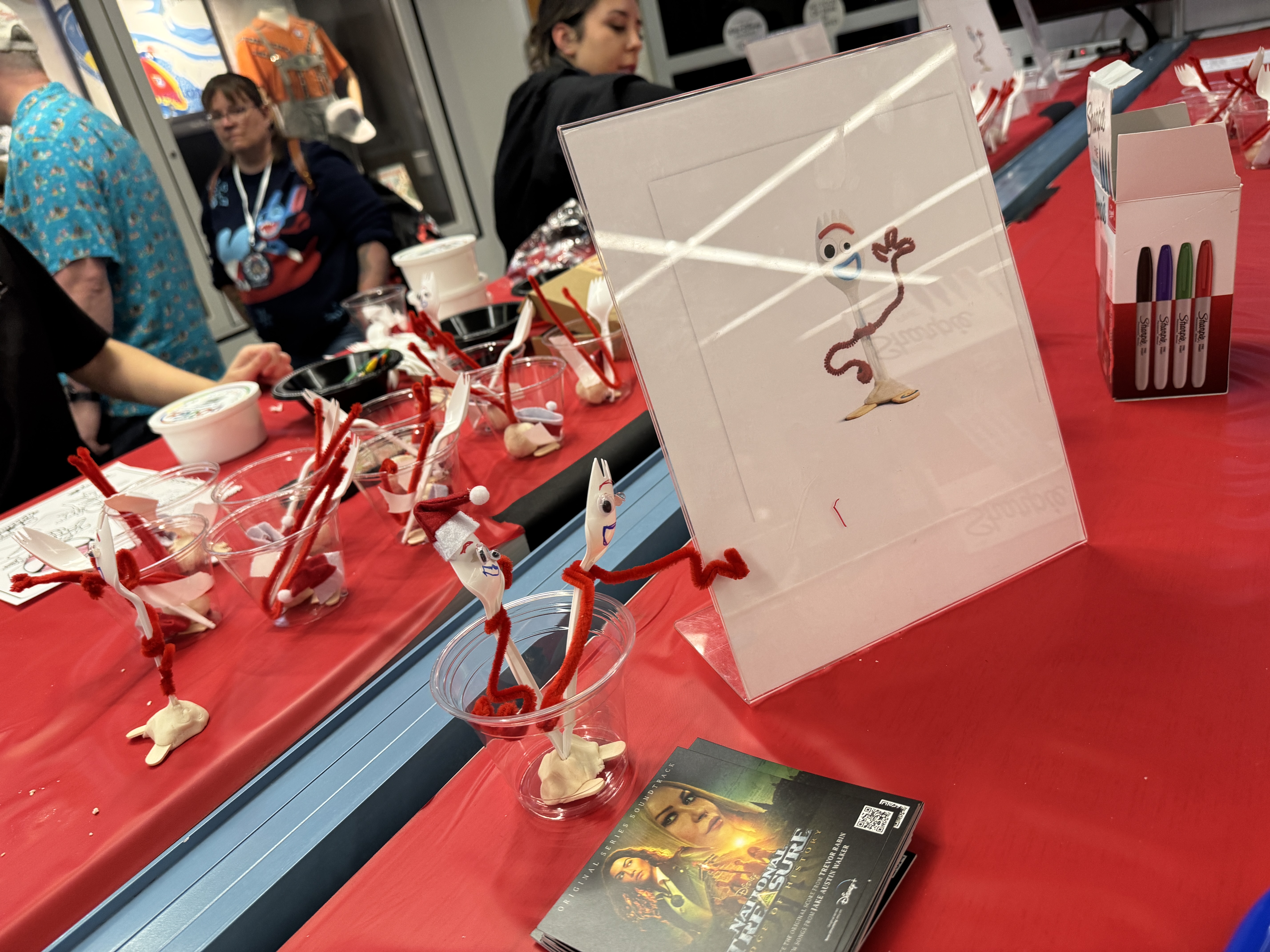 Inside the Frank G. Wells building, there were displays from The Walt Disney Archives (including Miss Piggy's costume from A Muppet Christmas Carol) a craft area where guests could build their own Forky from Toy Story 4, and a quiet space for those who might need a break from the celebration.