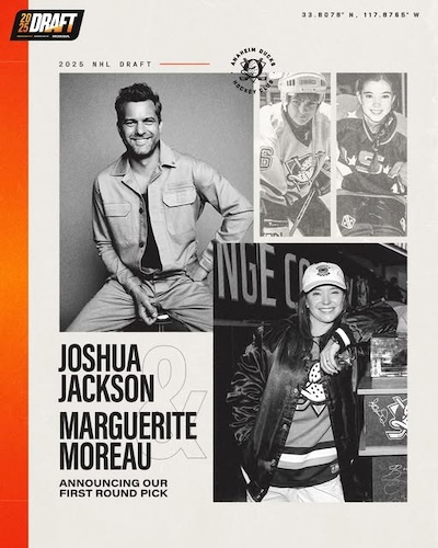 - The Anaheim Ducks have announced on Facebook that they will have The Mighty Ducks stars Joshua Jackson and Marguerite Moreau announce their first draft pick at the upcoming NHL Draft.