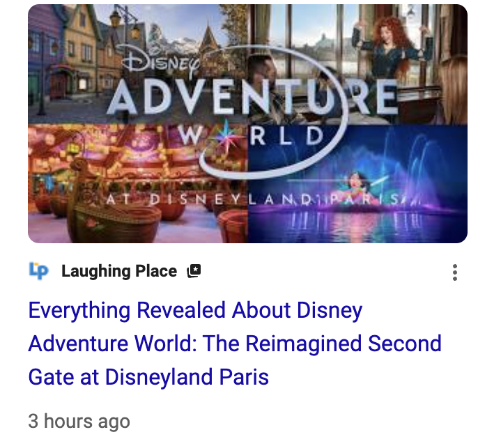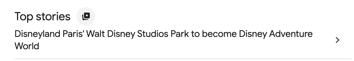 Go to Google.com and search for a topic that’s in the news, like Disney Adventure World