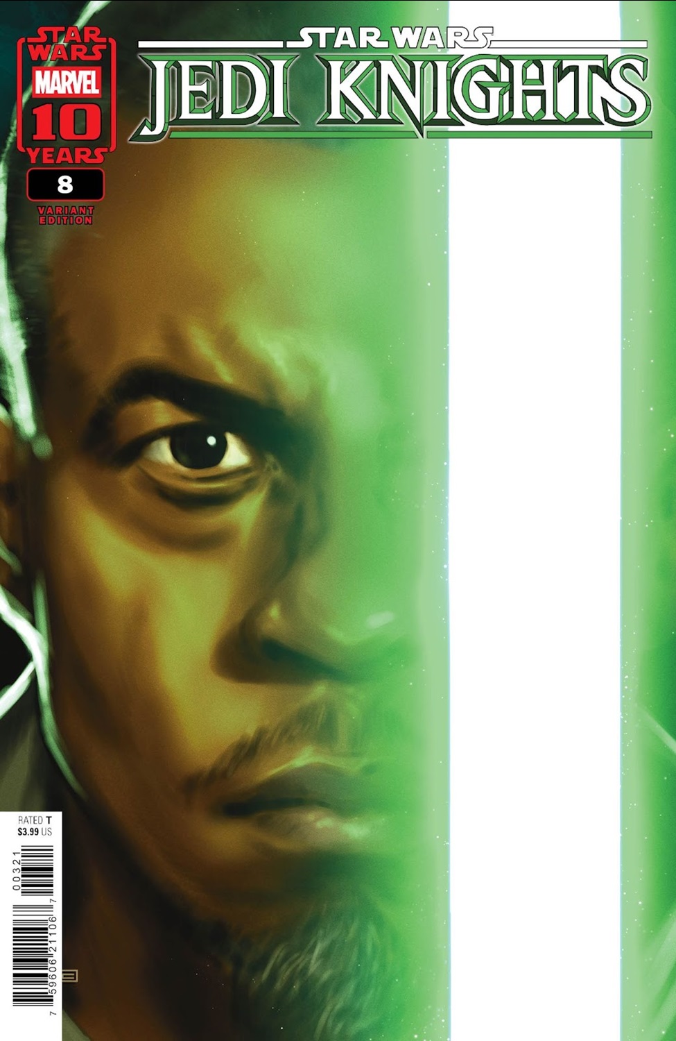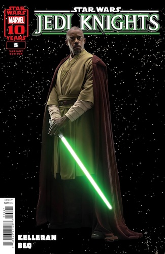 Another ongoing Marvel Comics title set in A Galaxy Far, Far Away is Star Wars: Jedi Knights by Marc Guggenheim. During the panel we got a first look at the main and variant covers for issue #8 (due out in October), all of which feature the character of Jedi Master Kelleran Beq, who was played on-screen by actor Ahmed Best in The Mandalorian.