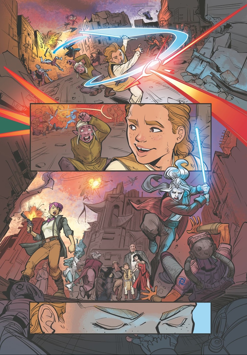 Lucasfilm Publishing’s official synopsis for The High Republic Adventures - The Battle of Eriadu is as follows: “Two estranged friends find themselves on opposing sides of the Battle of Eriadu. Jedi Padawan Gavi fights for light and life, while Driggit Parse sits at the right hand of the villainous Warden. When the two finally meet again after Driggit’s betrayal, it’s on the front lines. Can their old friendship be salvaged amidst a war?" Check out some sample pages from the comic below.