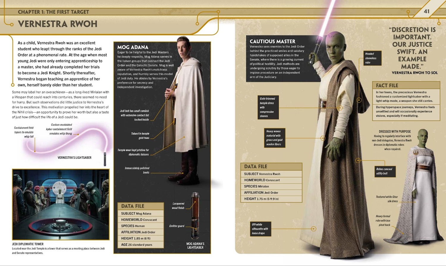 The Lucasfilm Publishing crew shared six different page spreads from Star Wars: The Acolyte Visual Guide.