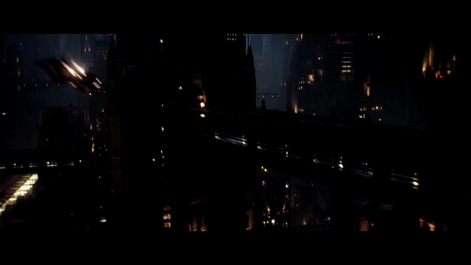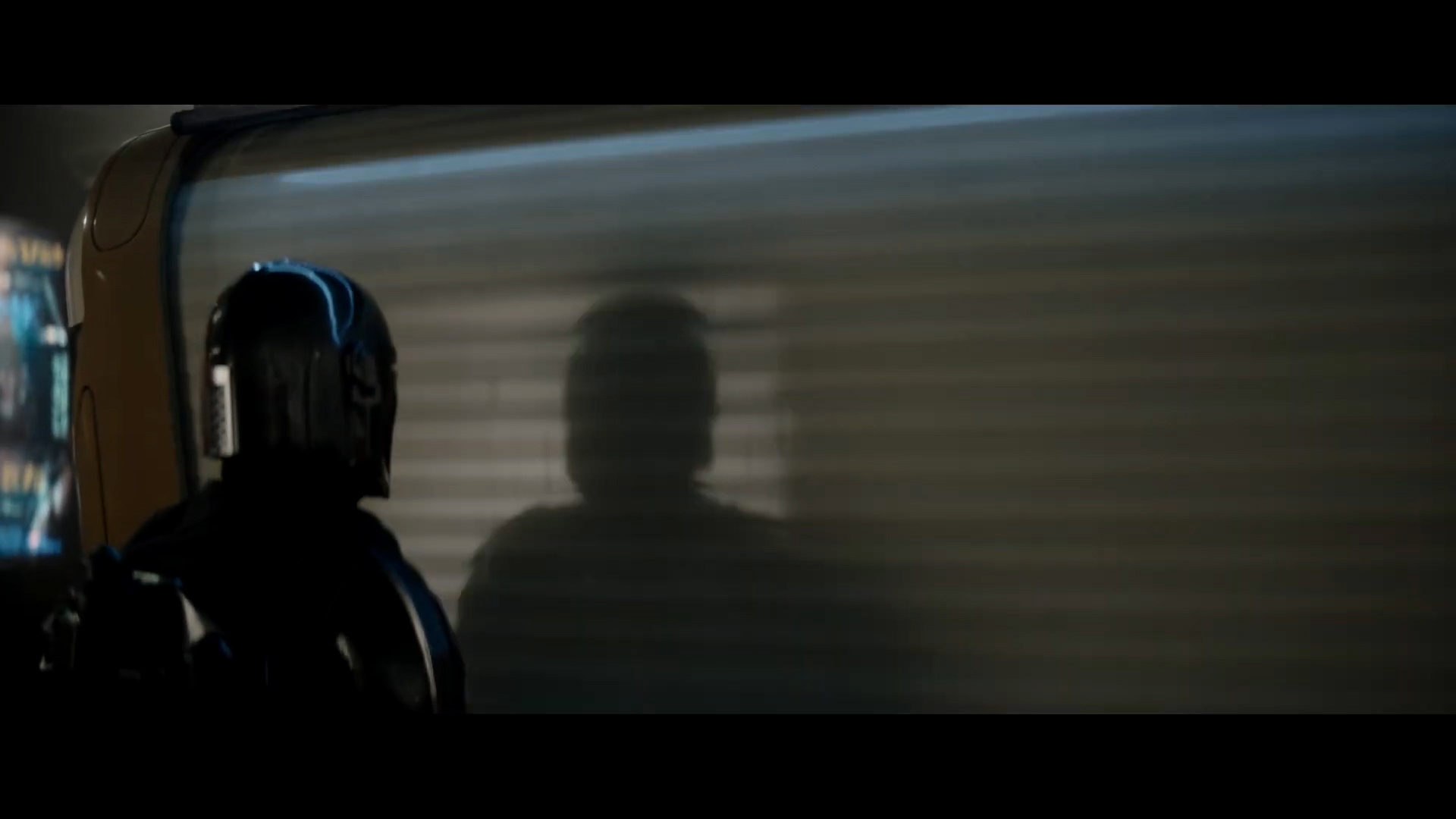 - Shot #14 - A cityscape at night. This could be on the planet Coruscant or a number of other locations in the Star Wars underworld such as Nal Hutta or Nar Shadda. A ship zooms into frame and under a bridge, but it doesn't look like the Razor Crest to me.