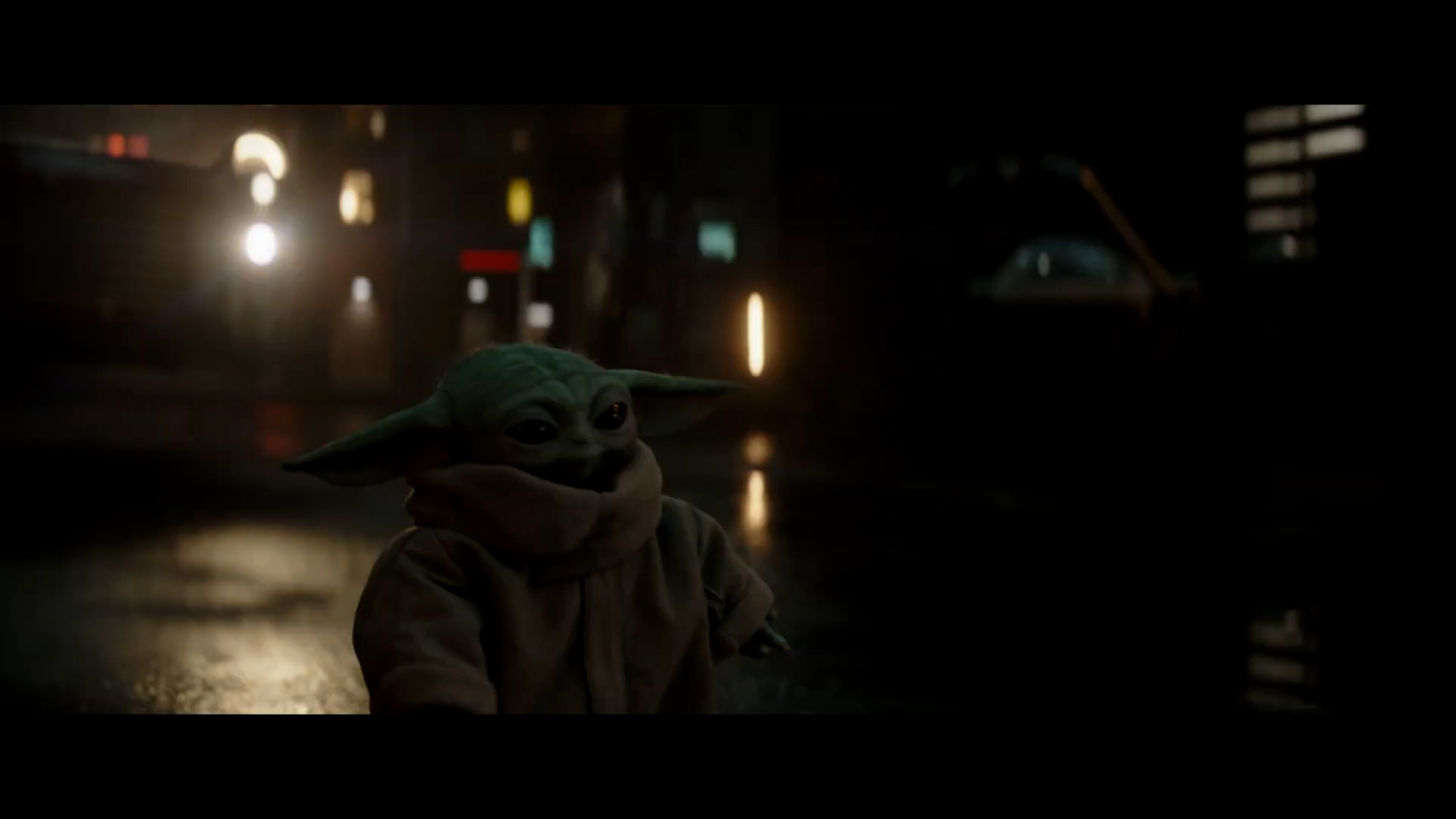 - Shot #44 - Grogu looks scared in the rain.