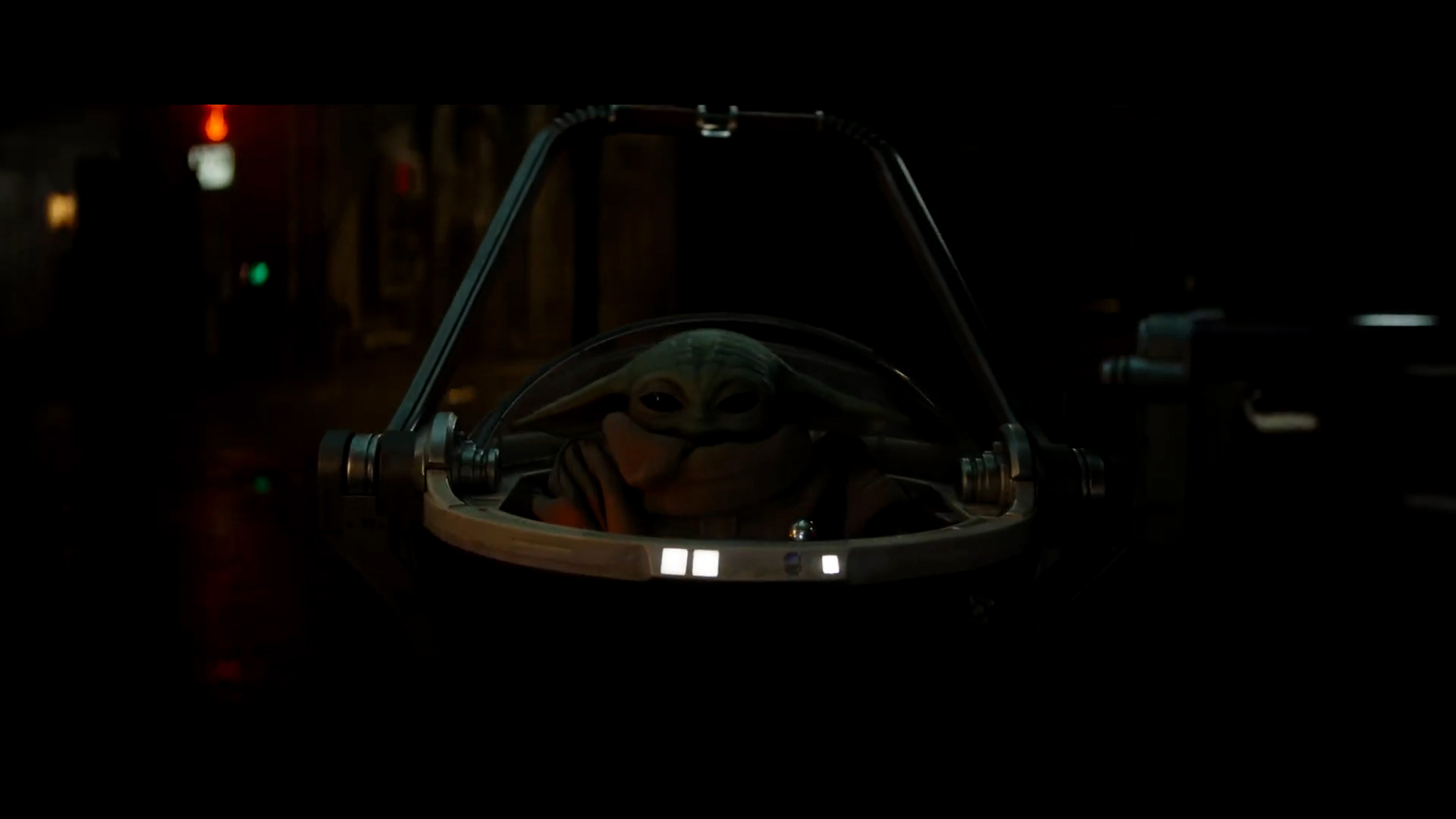 - Shot #77 - We see Grogu land in the seat of the pram and then use the controls to turn around.