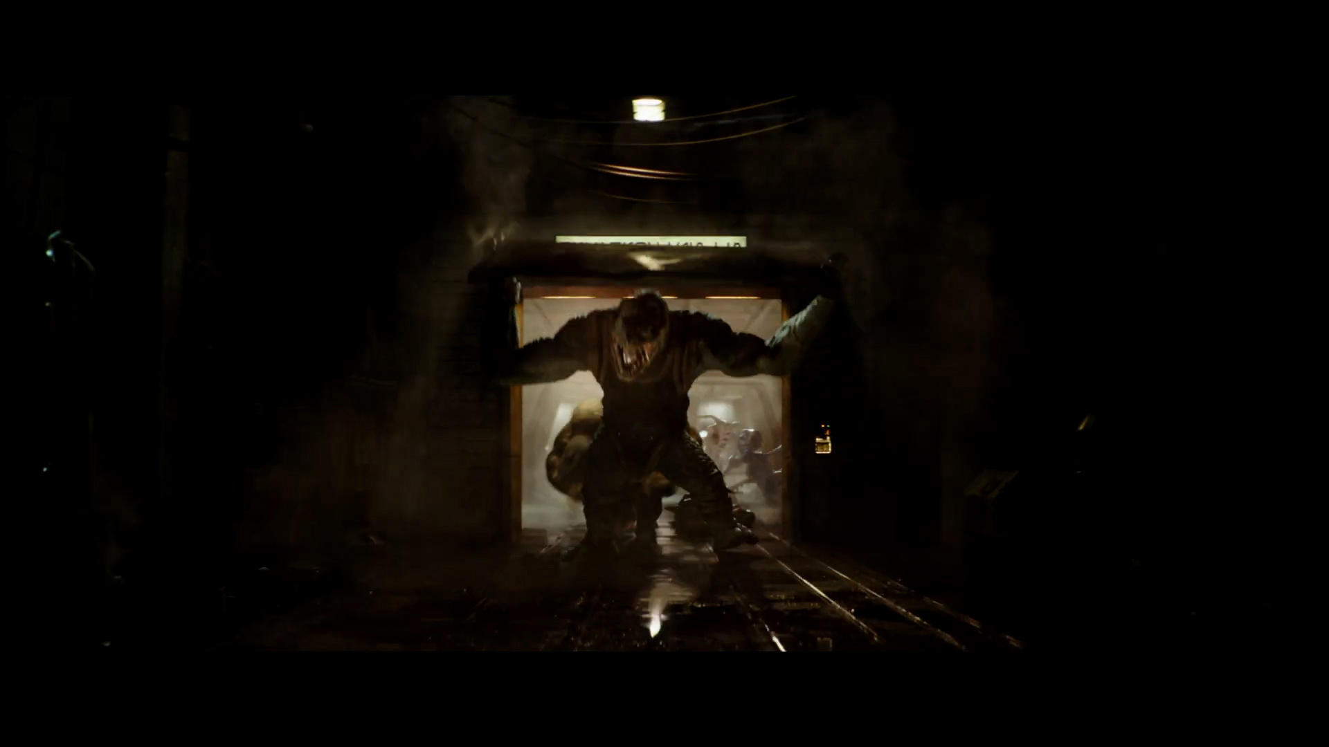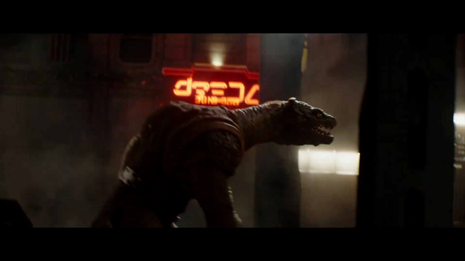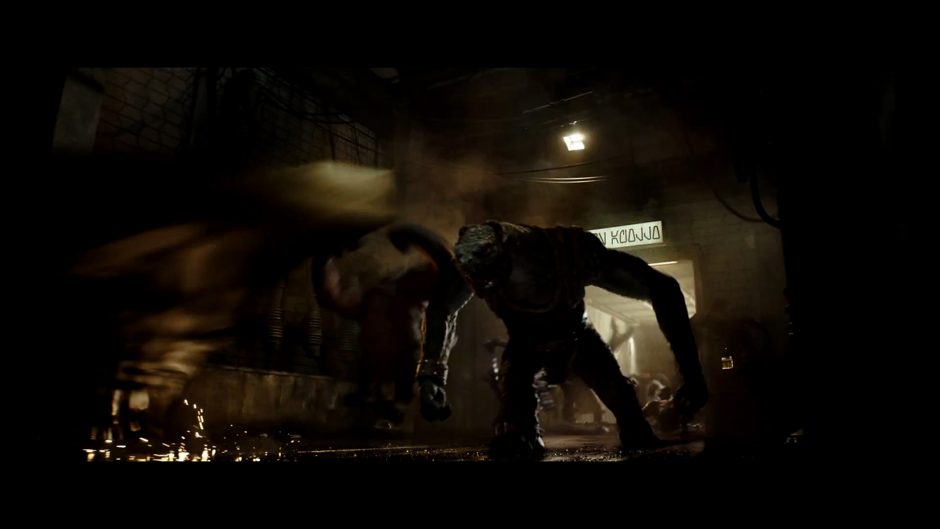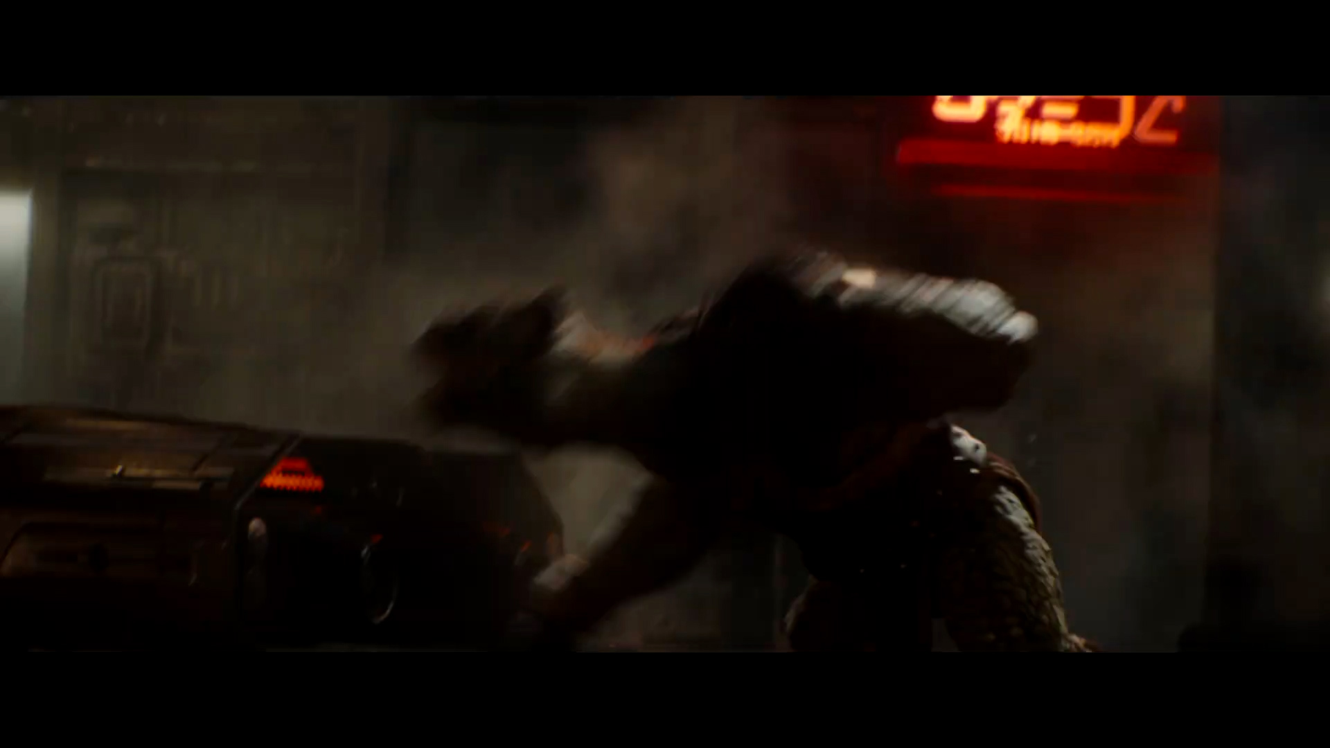 - Shot #70 - A door marked "WEATHERS APOLLO" bursts open to reveal a Mantellian Savrip behind it. I think we can assume this is outside the arena from earlier.