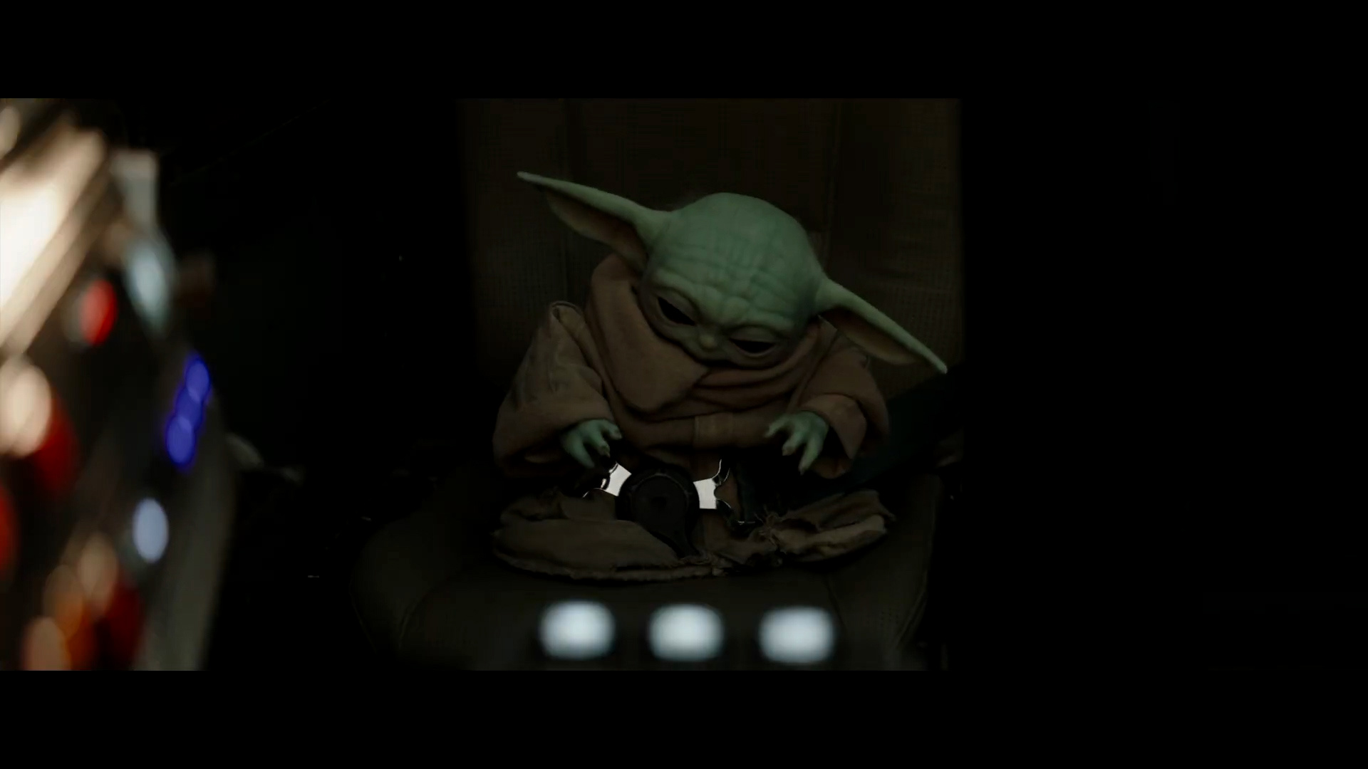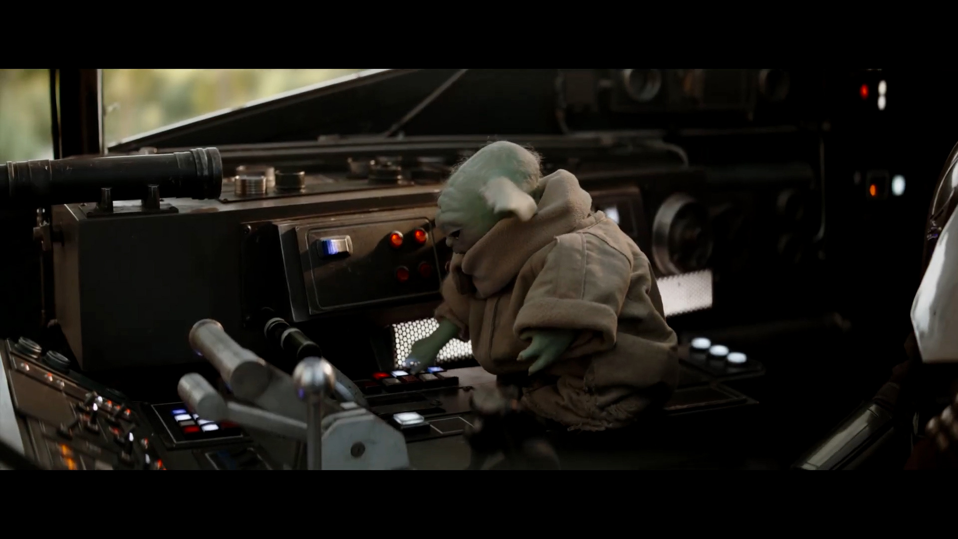 - Shot #7 - We see that the engine shut down because Grogu is once again fiddling with the controls of the Razor Crest.
