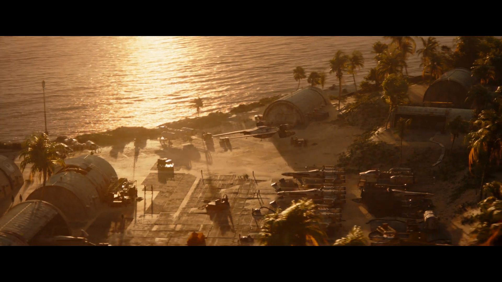 - Shot #28 - Aerial shot of Adelphi Base at sunset. A U-wing starfighter (introduced in Rogue One: A Star Wars Story) is landing on the airfield, and there are already a few X-wings and a couple Y-wings (from the original Star Wars film) parked there.