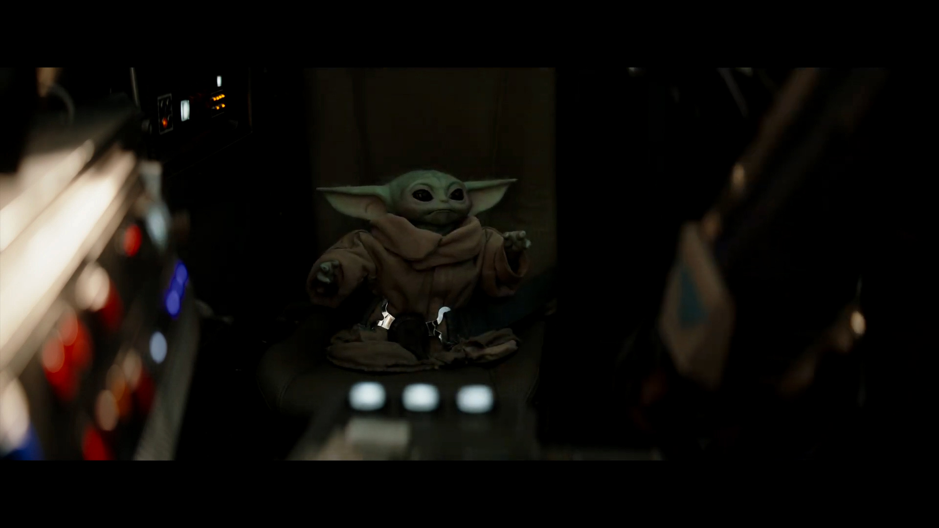 - Shot #9 - Mando places Grogu in his chair behind the pilot's seat.