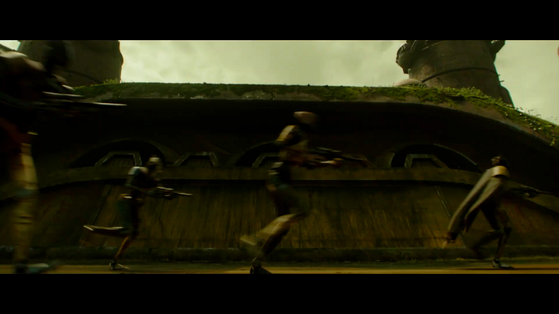 - Shot #36 - Wider aerial shot of the same complex with the droid soldiers running toward the right side of the frame. We can see that vines grow on the side of the building. A ship erupts at high speed from one of the three holes that were unveiled by the lowering door.
