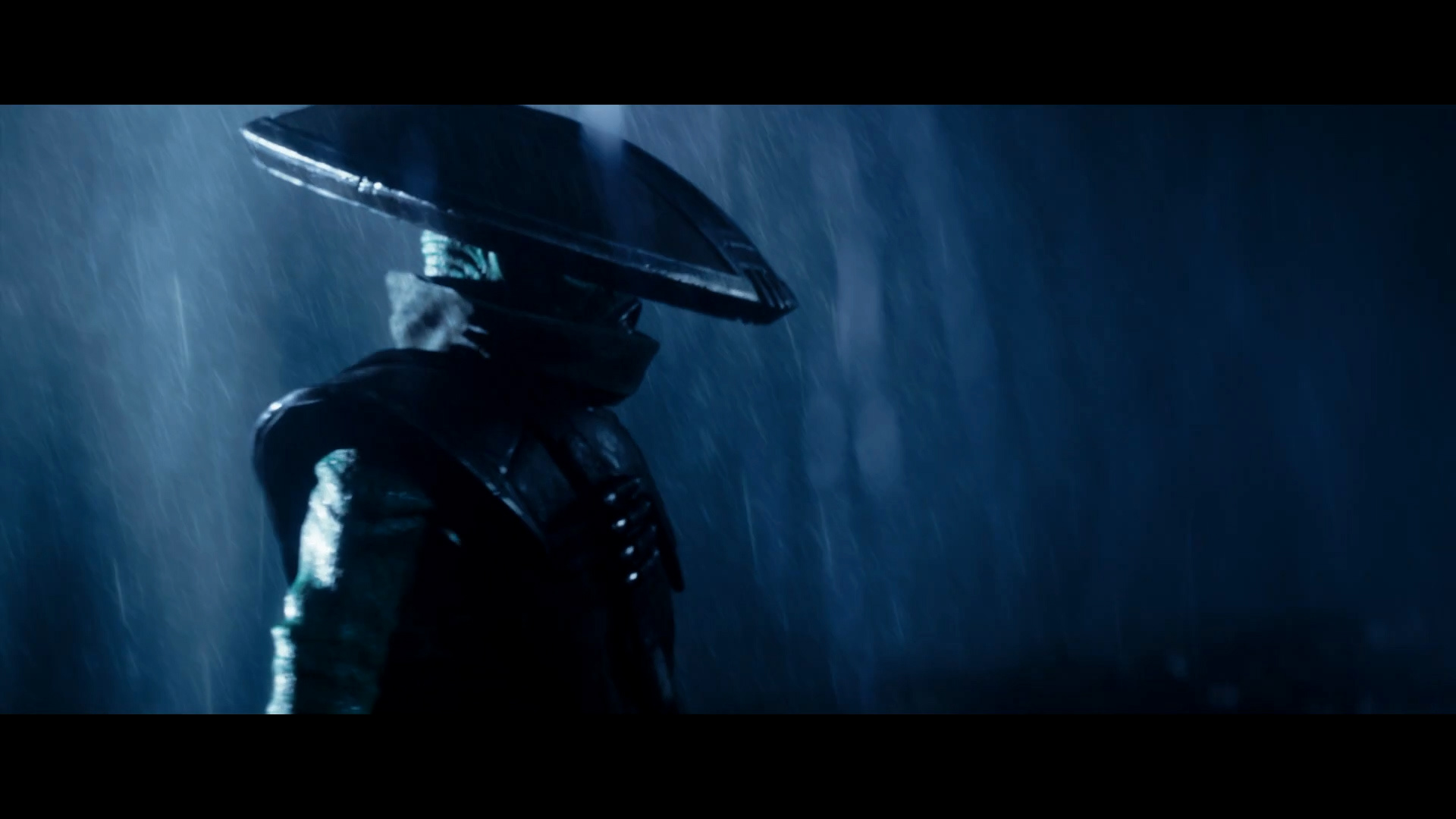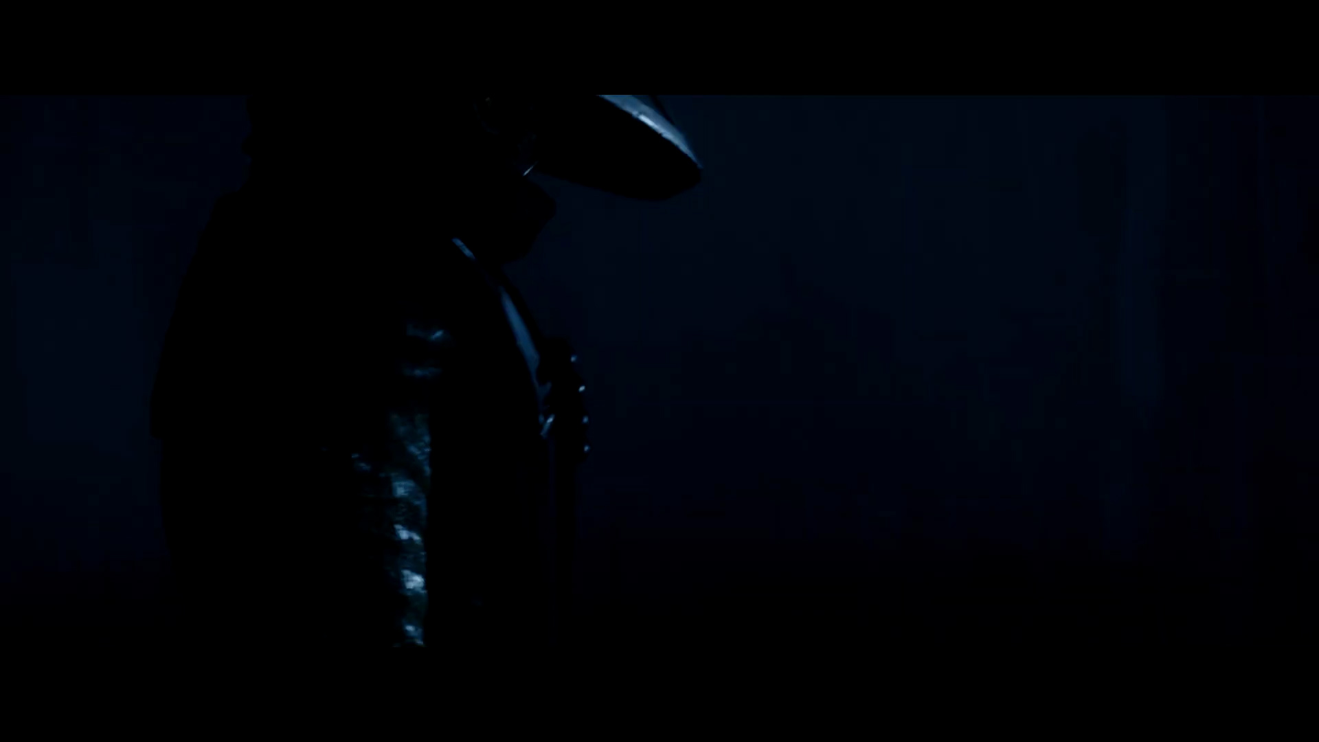 - Shot #43 - The camera whirls around Embo as another lightning strike reveals his face, hidden behind his collar.
