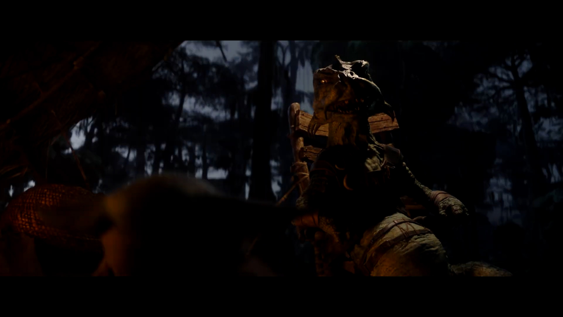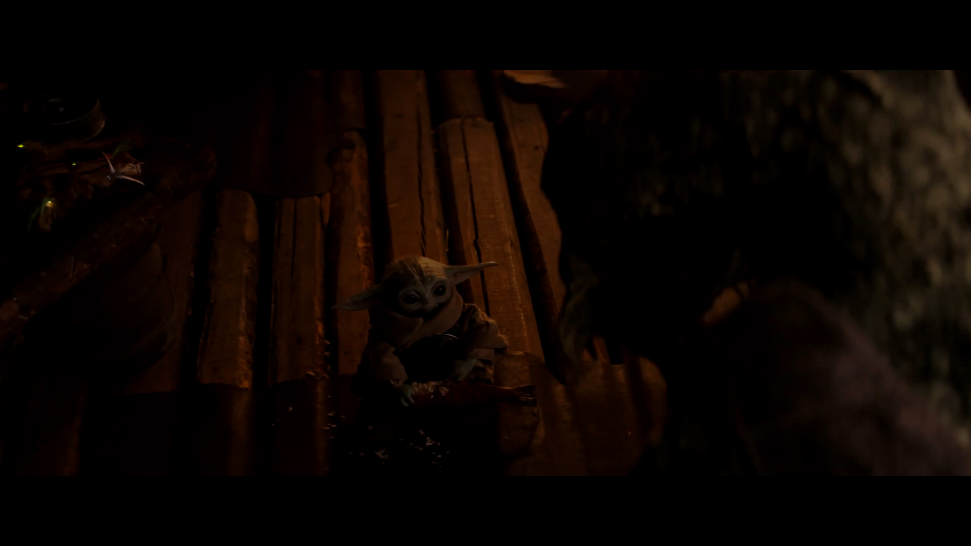 - Shot #52 - Grugu wanders through a swampy environment (possibly still Nal Hutta) using a walking stick, much like we saw Yoda do when he first appeared in The Empire Strikes Back and afterward.