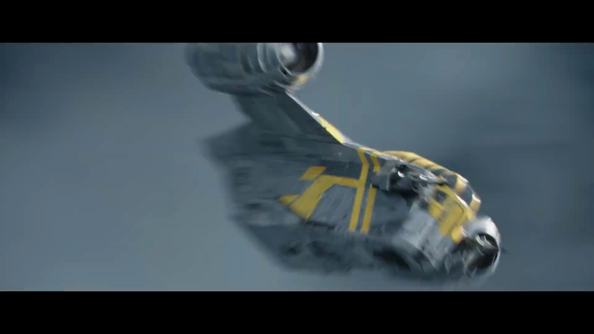 - Shot #13 - The Razor Crest flies through the clouds, and we get a better look at the yellow markings on this version of the ship.