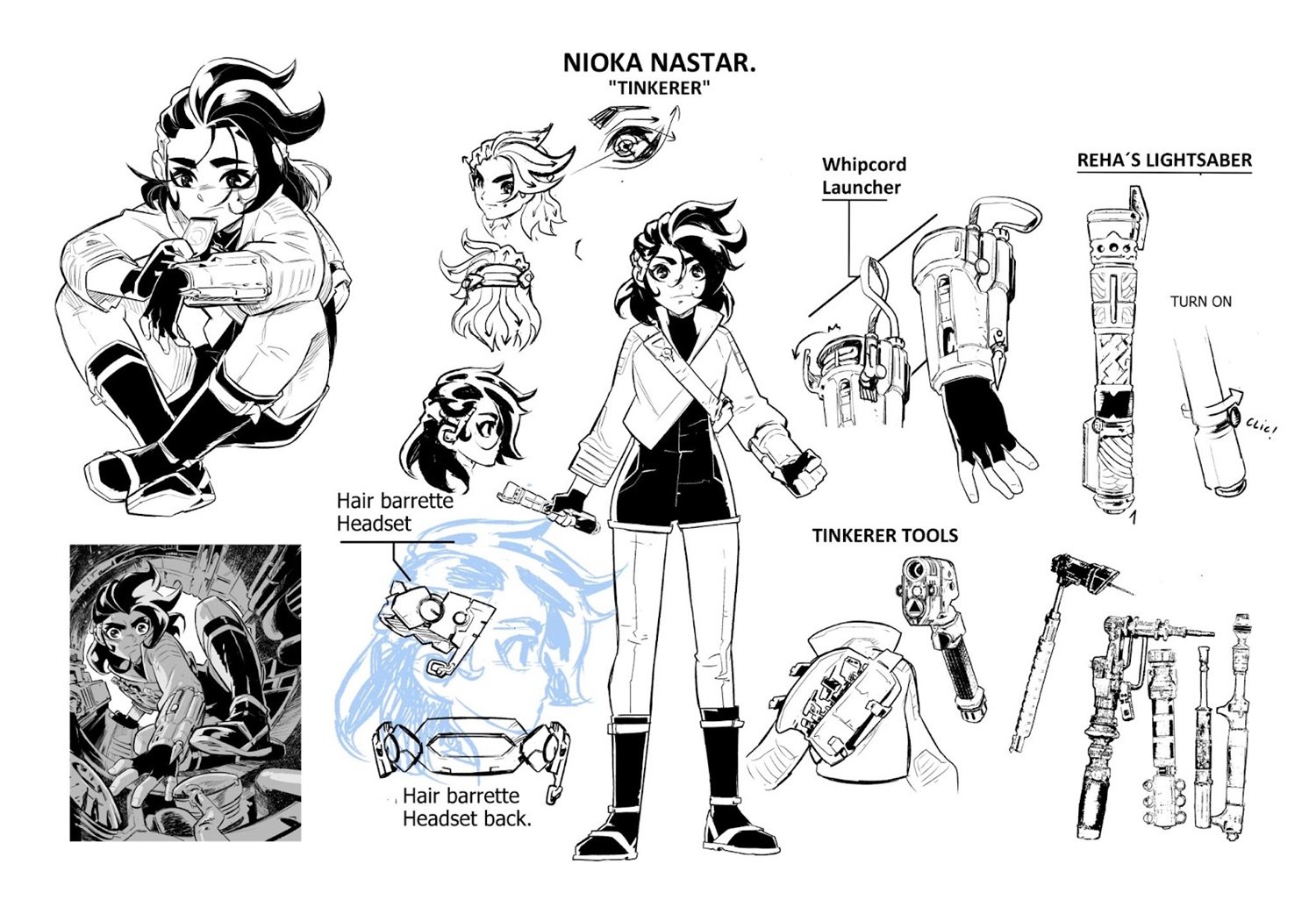 Character designs from the Star Wars: Jedi - Fallen Order manga include looks at Cal Kestis, Cere Junda, Greez Dritus, and the Inquisitor the Second Sister.