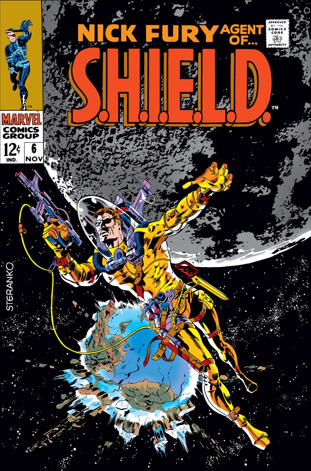 Buzz Lightyear soars to infinity and beyond, following in the footsteps of superspy Nick Fury's classic cosmic adventure in Nick Fury, Agent of S.H.I.E.L.D. (1968) #6.
