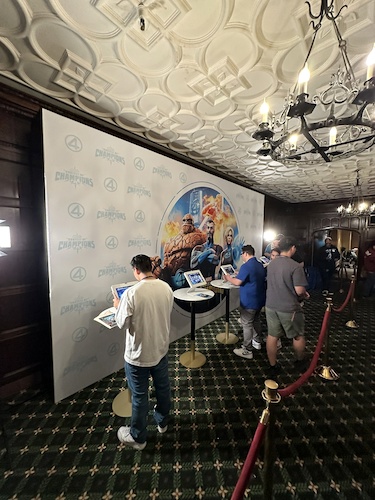 Yesterday, July 25th, the El Capitan Theatre hosted their Friday Fan Event for The Fantastic Four: First Steps, offering fans an incredible experience full of photo ops, themed goodies, and a screening of the MCU debut of Marvel’s First Family. Fans visiting the event had the chance to celebrate the Fantastic Four with an exclusive pop-up from the hit mobile game Marvel Contest of Champions. Taking over the downstairs exhibit area, the Marvel Contest of Champions Gaming Area invited attendees to embark on an exclusive challenge to take down Silver Surfer.