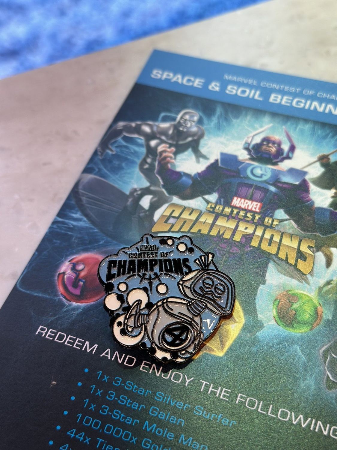 Stepping up to one of their iPad gaming areas, players were able to choose one of their favorite Fantastic Four characters. I decided to choose their original design Galan, who Nicol described as a good guy “vegan Galactus." The game offers quick paced gameplay, using touch controls to attack and block against enemies. Completing the challenge awarded players with a special H.E.R.B.I.E. pin exclusive to the pop-up. Nicol, adorned with an incredible set of H.E.R.B.I.E. designed nails, crafted the pin design himself.