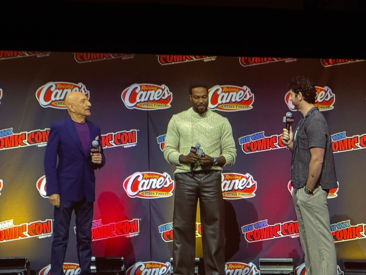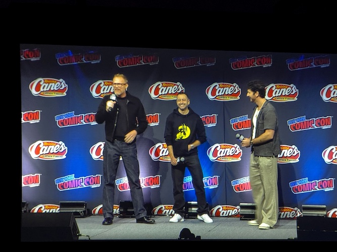 Winderbaum then shifted coasts to Los Angeles to introduce Yahya Abdul-Mateen II and Sir Ben Kingsley, stars of Wonder Man. Abdul-Mateen described wanting “to play a dude who can eat a hamburger" after heavier dramatic roles, calling Simon Williams “a dreamer walking a fine line between ego and vulnerability." Kingsley delighted the crowd, recalling his journey from Iron Man 3’s Mandarin to All Hail the King and now this show, joking that “Trevor’s battery answered the phone" when Destin Daniel Cretton called (he answered the offer in character).