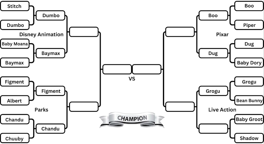 Be sure to come back tomorrow as we reveal the winner of today’s poll and continue onward through our bracket to crown the cutest Disney character!