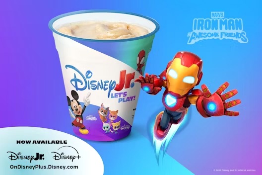 - Disney Jr. Peanut Butter Banana Smoothie - Inspired by Iron Man and His Awesome Friends, this smoothie is made from peanut butter, banana, dates, and a scoop of ice that come together for a creamy, satisfying smoothie.