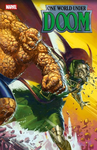 - Marvel Comics has released the very exciting cover art– featuring the Thing clobbering Victor Von Doom– and a synopsis (see below) for the penultimate issue of its current One World Under Doom crossover event.