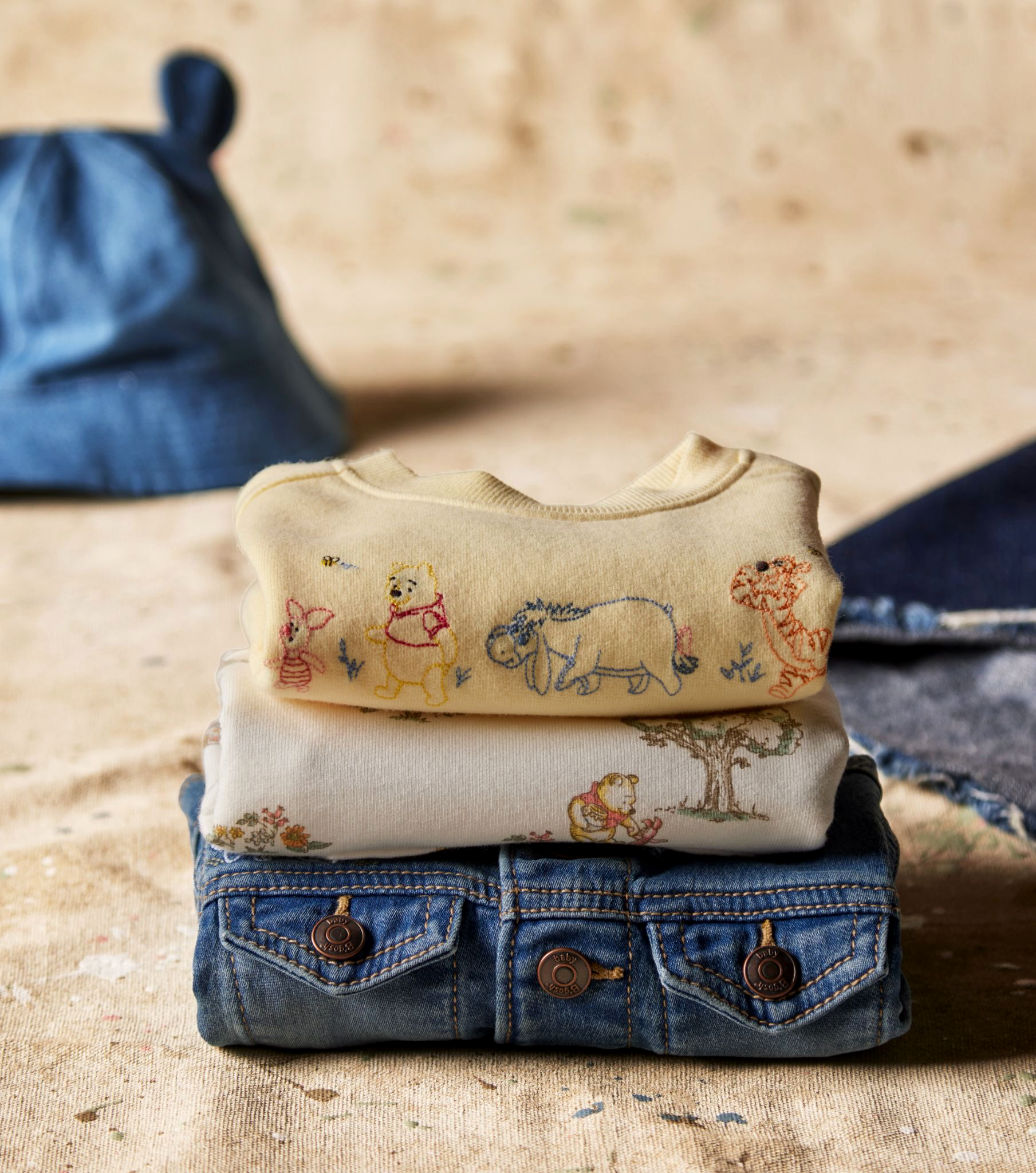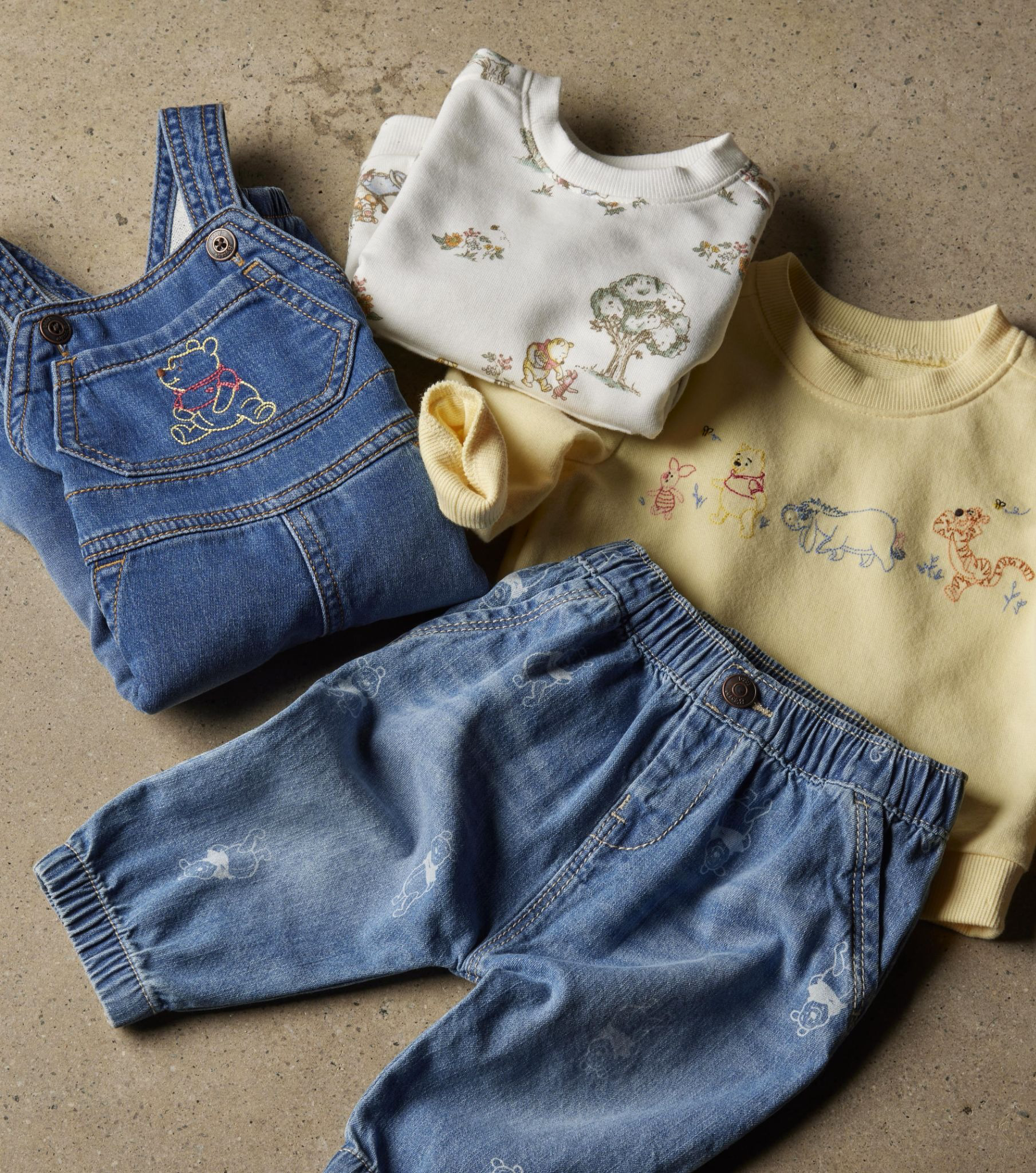 The nostalgic Disney collaboration brings timeless Pooh designs, classic denim, and heirloom-quality details to baby apparel.