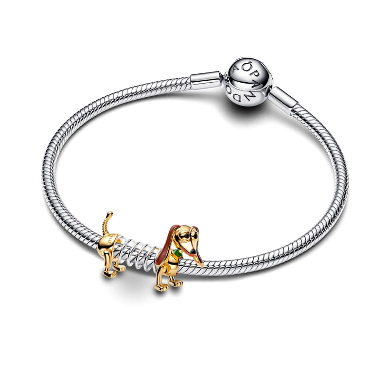 Rounding out the lineup is a Slinky Dog charm that combines sterling silver, enamel accents, and gold plating to recreate the lovable toy’s signature look. With its spring-inspired design, it adds both texture and movement to any bracelet, making it a standout for longtime fans.