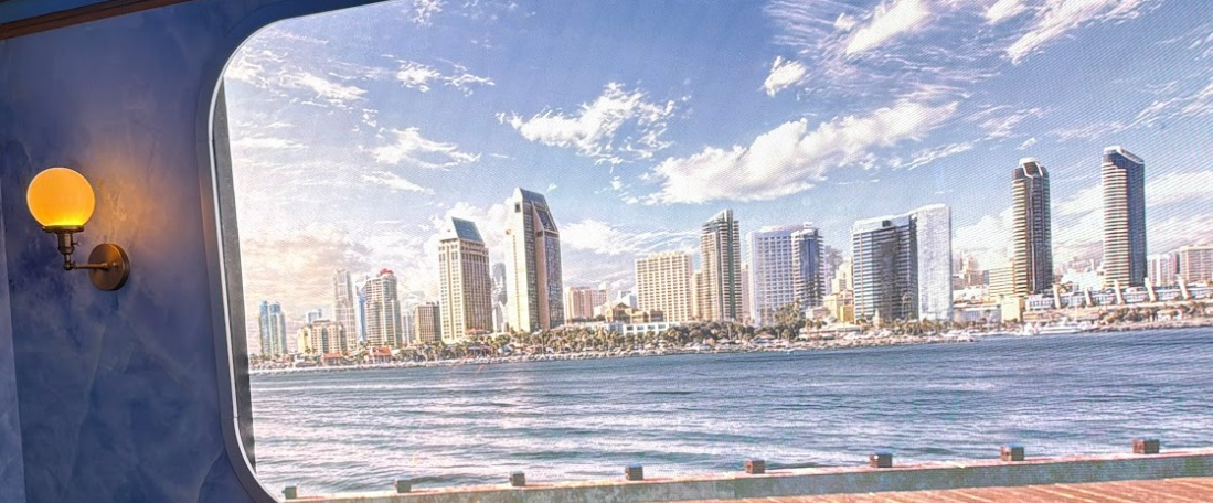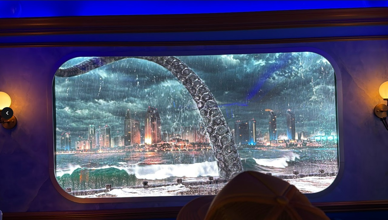 As the experience unfolds, the serene city projected outside the window dramatically shifts, becoming stormy, and Laistrygonian Giants can be seen passing by. The host grows visibly nervous, commenting on the turbulent waves and fearing they are a sign of the gods' fury. The drama culminates in a large tentacle hitting the window.