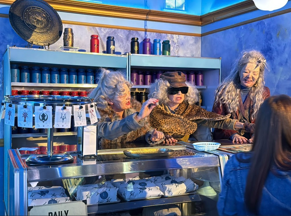 Following this dramatic interlude, guests are guided to the Gray Sisters, who are ready to exchange everyone's drachmas (the mythical currency) for exclusive Percy Jackson swag.